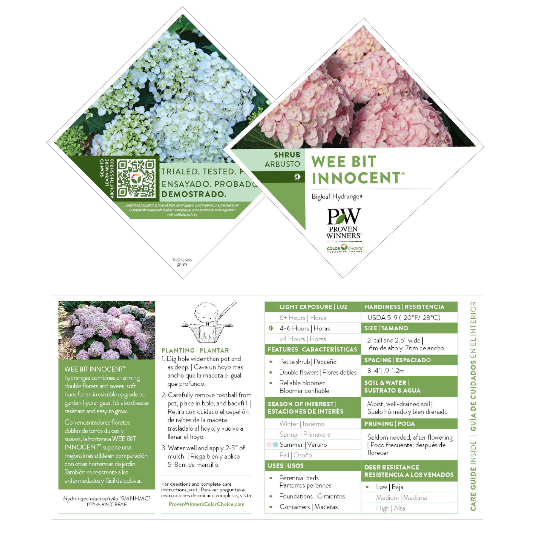 For those who cherish soft, delicate hues in their garden, Wee Bit Innocent® Hydrangea is the perfect choice. Its lush, mophead blooms gently fill with pastel pinks, blues, and purples, creating a soft, pillowy display that offers a peaceful retreat for the eyes. This graceful hydrangea not only enhances the beauty of your summer garden but also reblooms in the fall, extending the season of its intricate, doubled florets. A true garden treasure, Wee Bit Innocent™ brings tranquility and charm to any space.