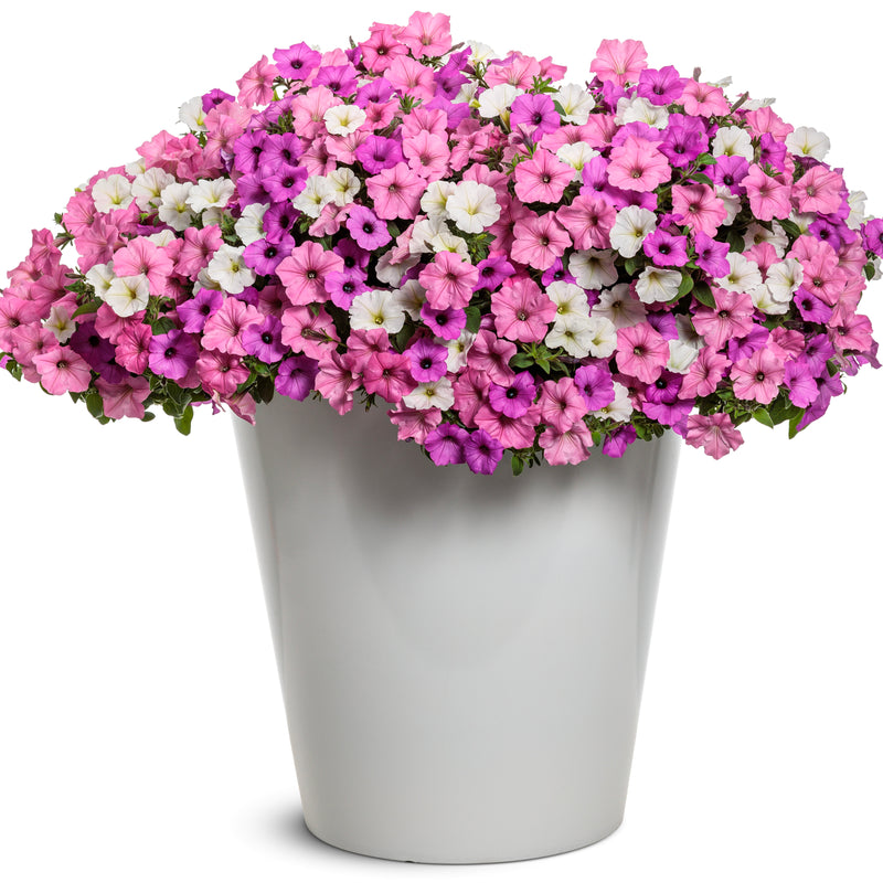 This is the perfect solution for adding bold, beautiful color to your outdoor space with minimal effort! This combo includes: Supertunia Vista Bubblegum, Supertunia Vista Snowdrift, and Supertunia Vista Jazzberry. With its easy-to-care-for nature, it’s perfect for busy gardeners looking to make a statement without the stress. Bursting with bright hues and flourishing quickly, this combo is designed to create an instant splash of color that will last through the summer and beyond. Enjoy a stunning, low-maintenance garden that handles the heat with ease!