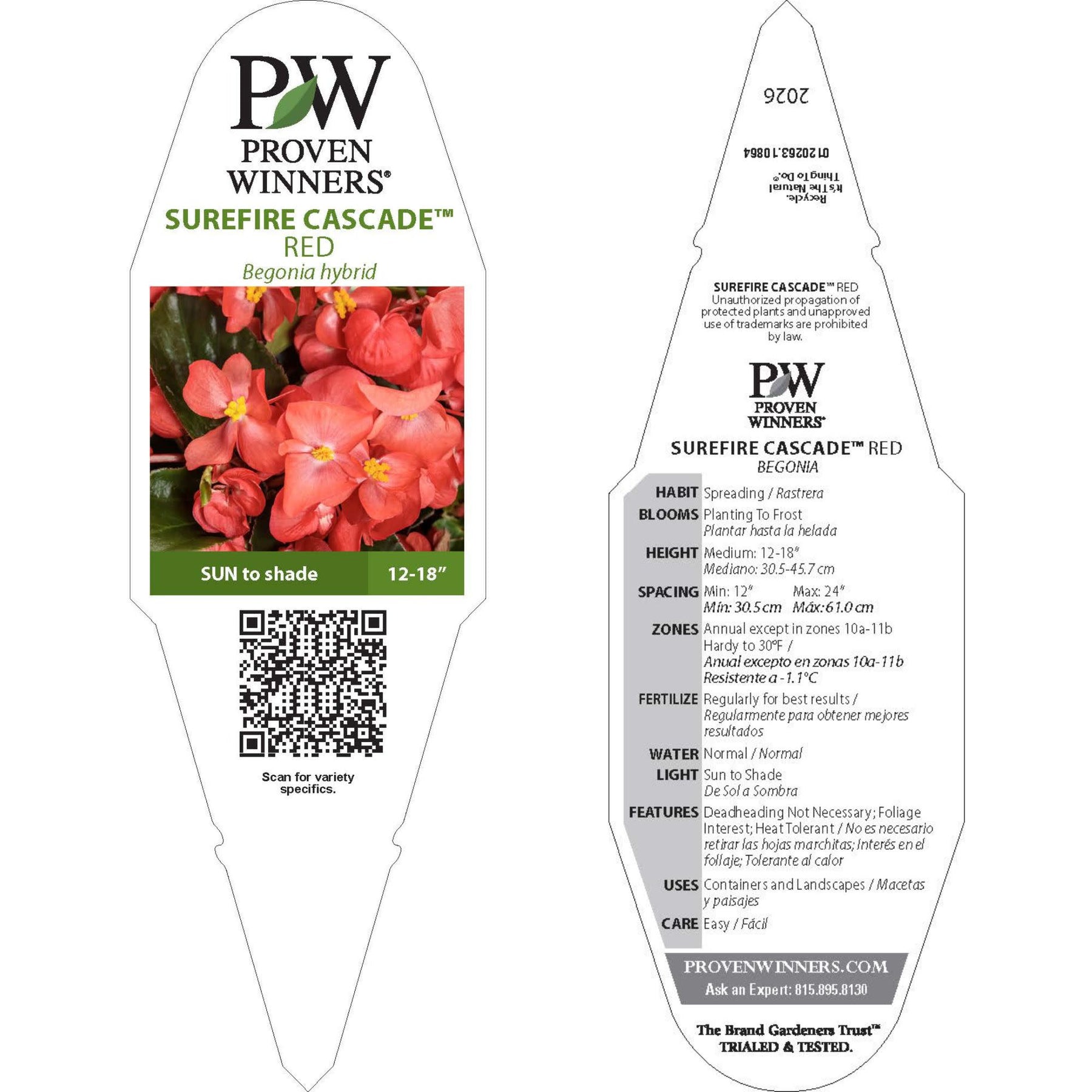 If you love the bold beauty of our classic Surefire® begonias, get ready to fall for this stunning trailing variety - Surefire Cascade™ Red.. Designed to shine in large hanging baskets and upright containers, it spills effortlessly into a lush cascade of glossy green foliage and vibrant red blooms that command attention from spring straight through fall—no deadheading required!
