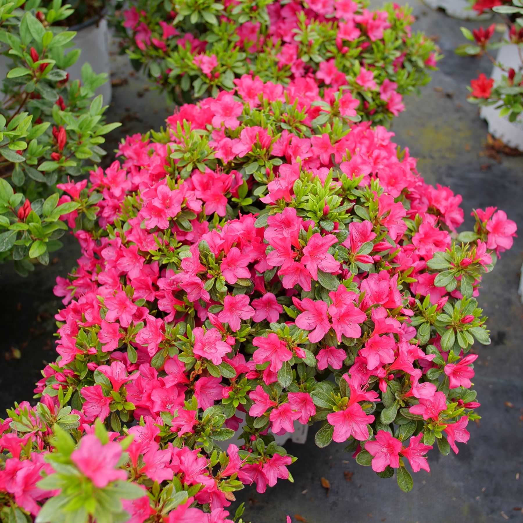 In a perfect world, azaleas would bloom for months instead of just weeks and have big, full flowers with pure and true colors. That's exactly what Perfecto Mundo® azaleas do. Ground cover is very useful, but thankfully the Perfecto Mundo Carpet series is very pretty as well. The days of dreary plain green ground cover are over. With Perfecto Mundo Fuchsia Carpet® azalea, you’ll find a dense drift of color in the spring. It then reblooms heavily in the summer, like the rest of the Perfecto Mundo series.