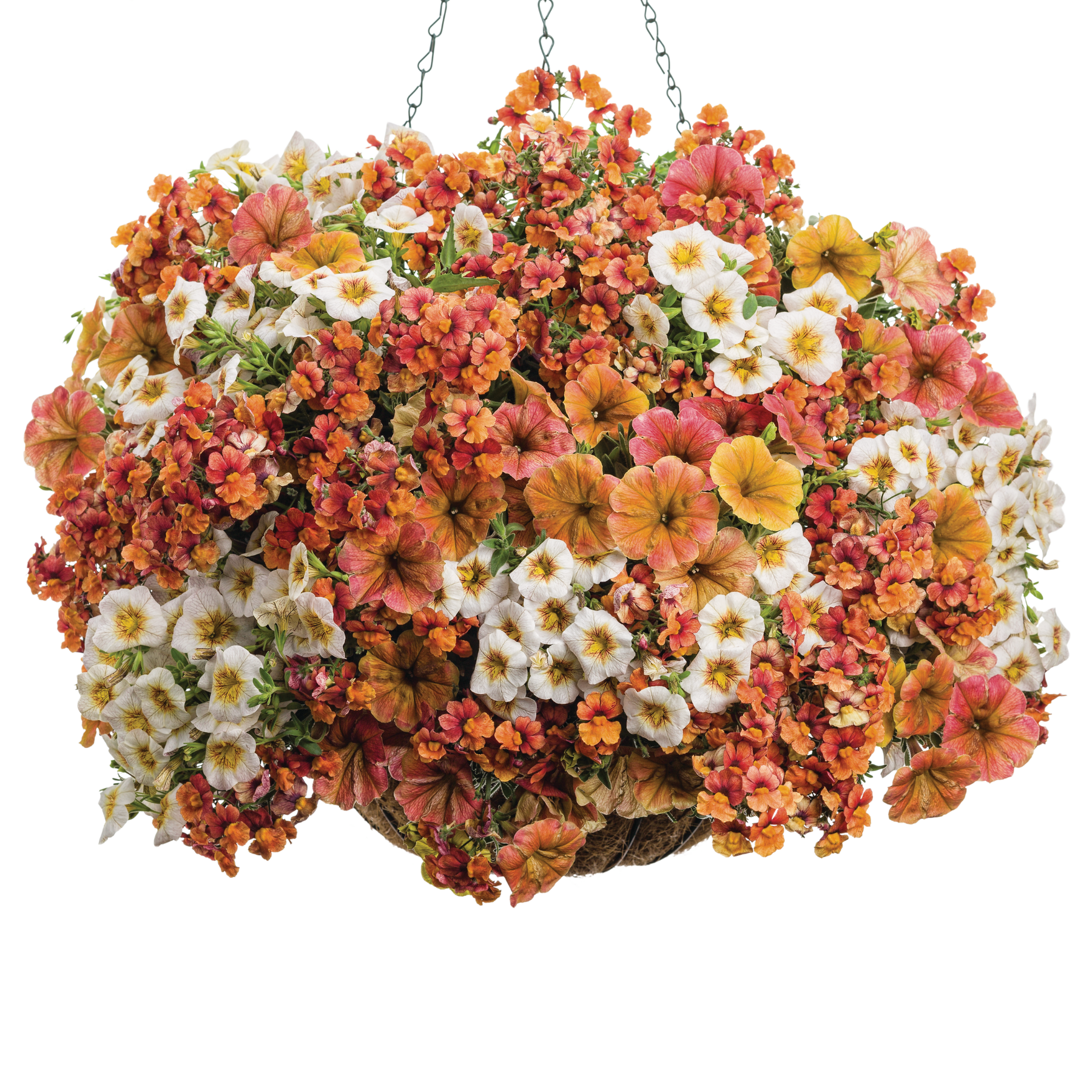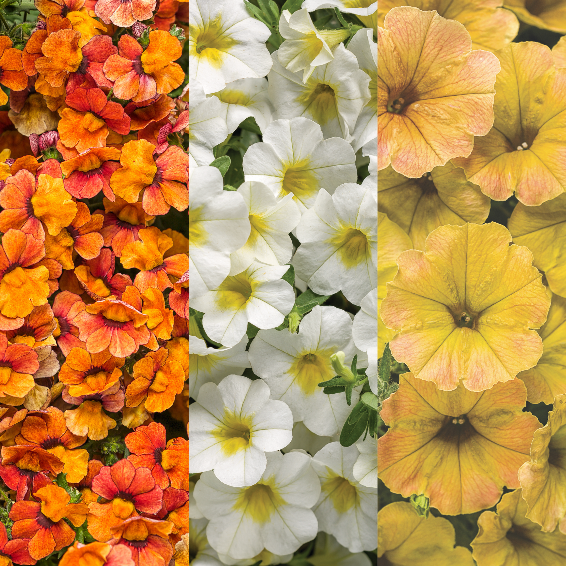 Sunsatia® Blood Orange™ Nemesia (Nemesia hybrid) (x2), Superbells® Over Easy™ Calibrachoa (x2) and Supertunia® Honey™ Petunia (x1)