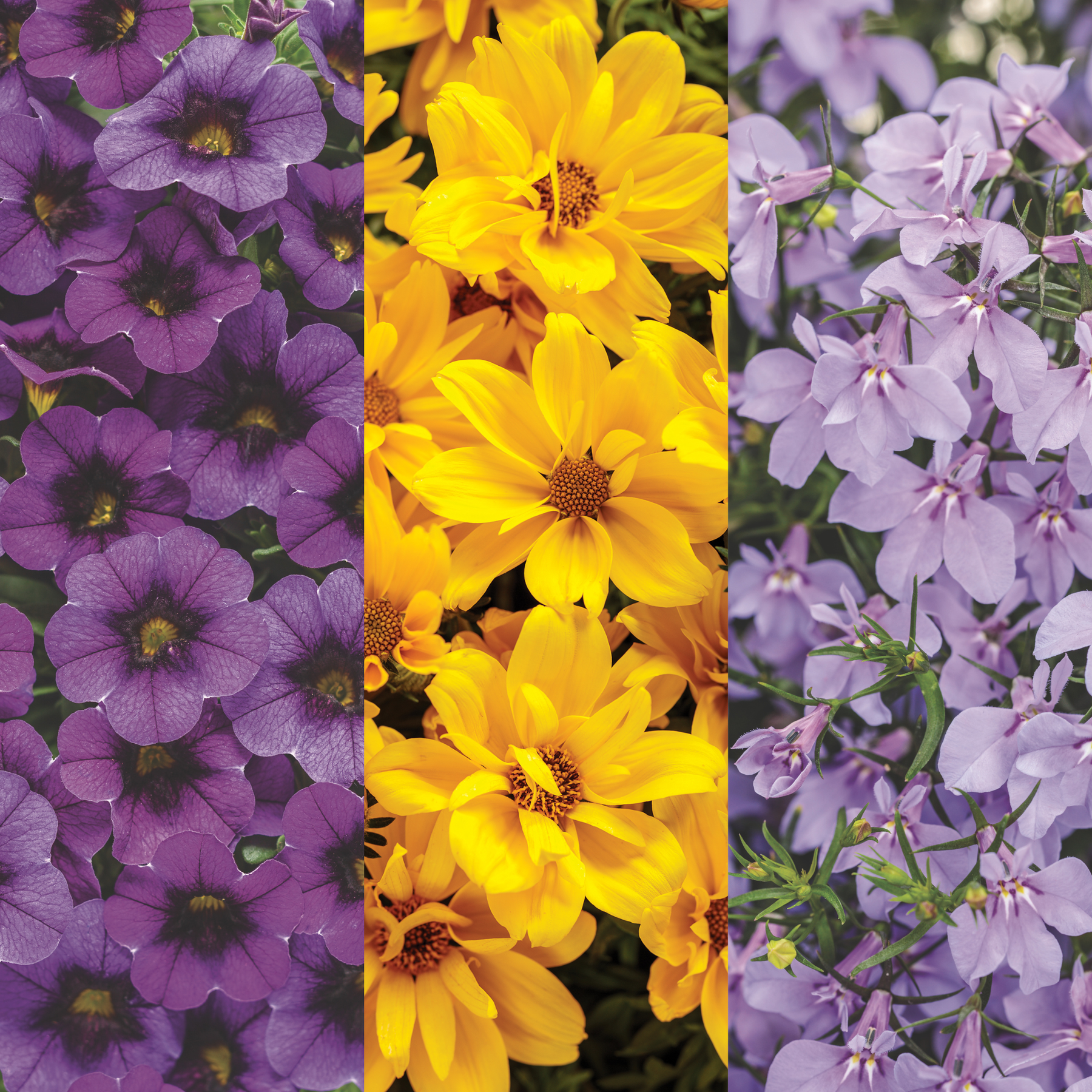 Superbells® Grape Punch™ Calibrachoa (x2), Goldilocks Rocks® Apache Beggarticks (Bidens ferulifolia) (x2) and Laguna® Royale Lilac Lobelia (erinus) (x2)