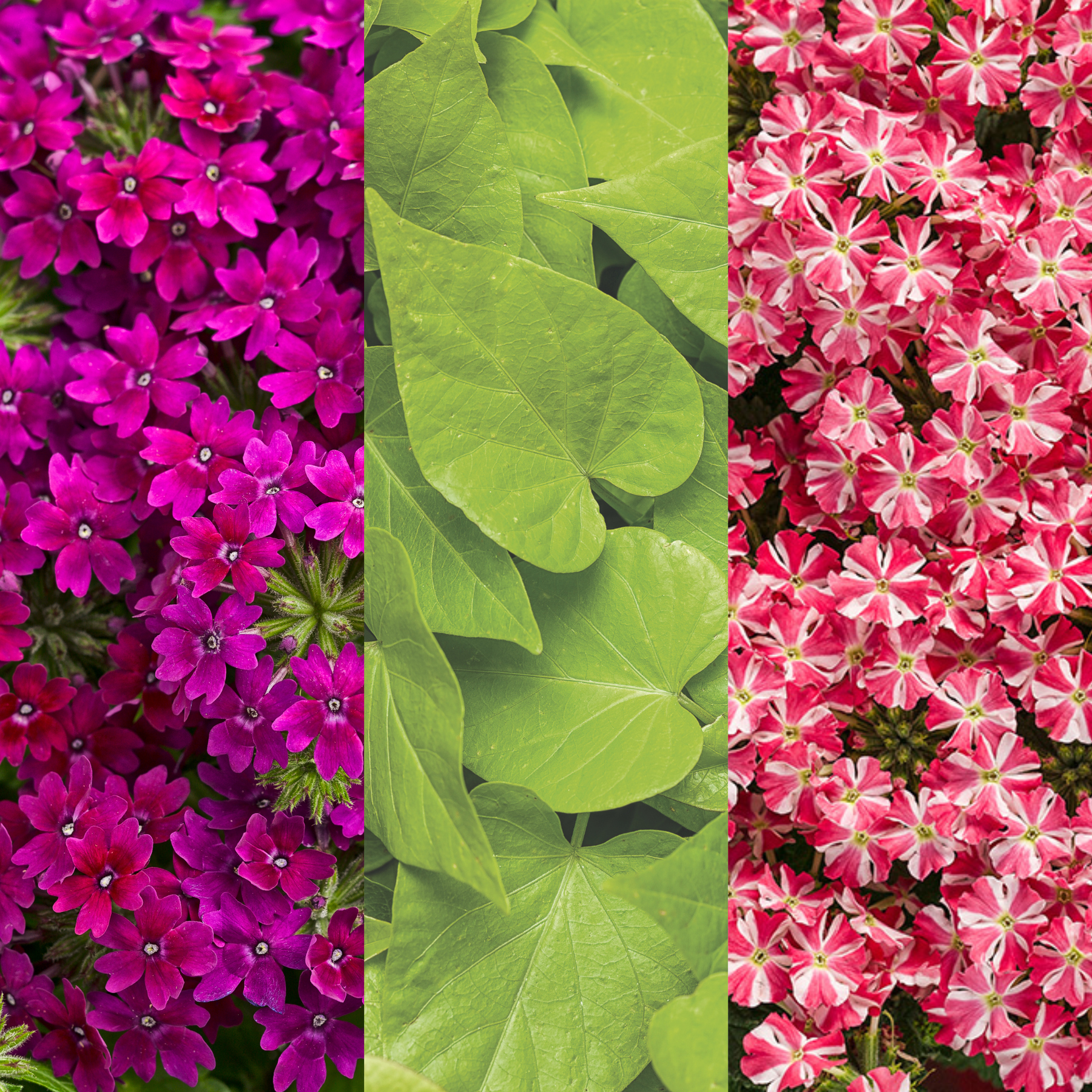 Superbena® Cherryburst Verbena (x2), Superbena Royale® Plum Wine Verbena (x2) and Sweet Caroline Sweetheart Lime Sweet Potato Vine (Ipomoea) (x1)