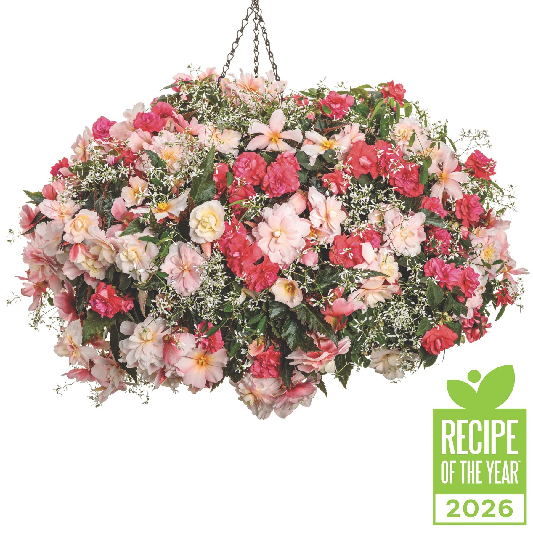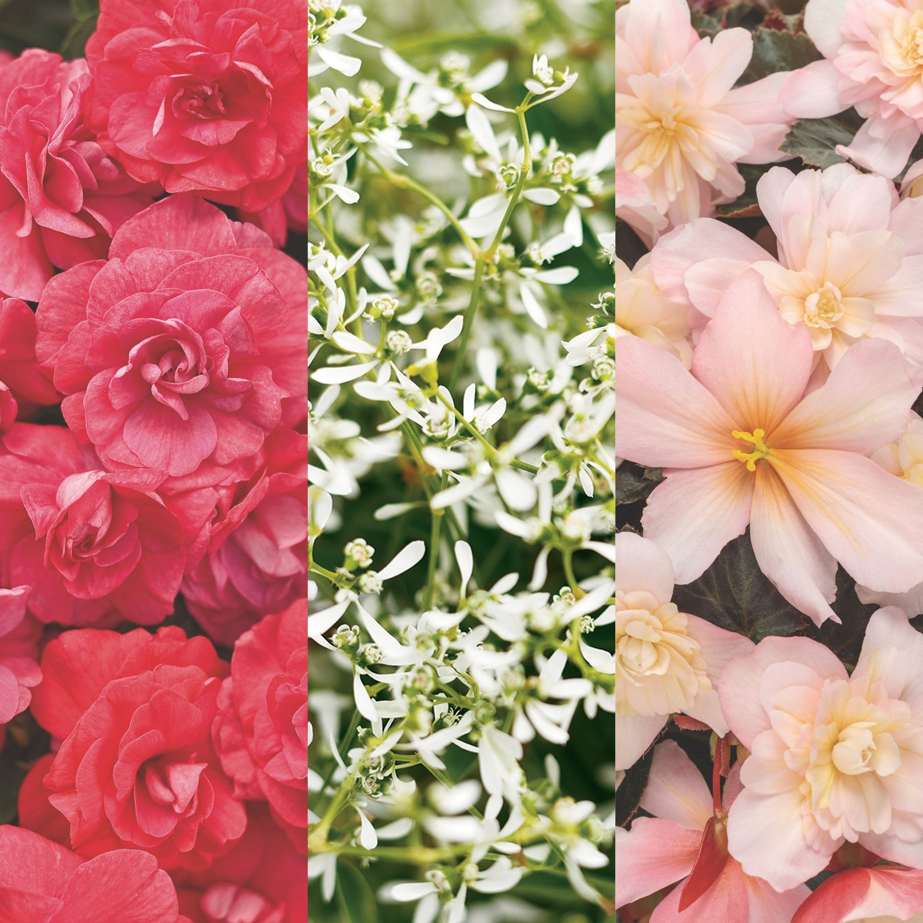 Double Delight® Appleblossom Begonia (tuberhybrida) (x2), Diamond Frost® Euphorbia (x2) and Rockapulco® Coral Reef Double Impatiens (walleriana) (x2)