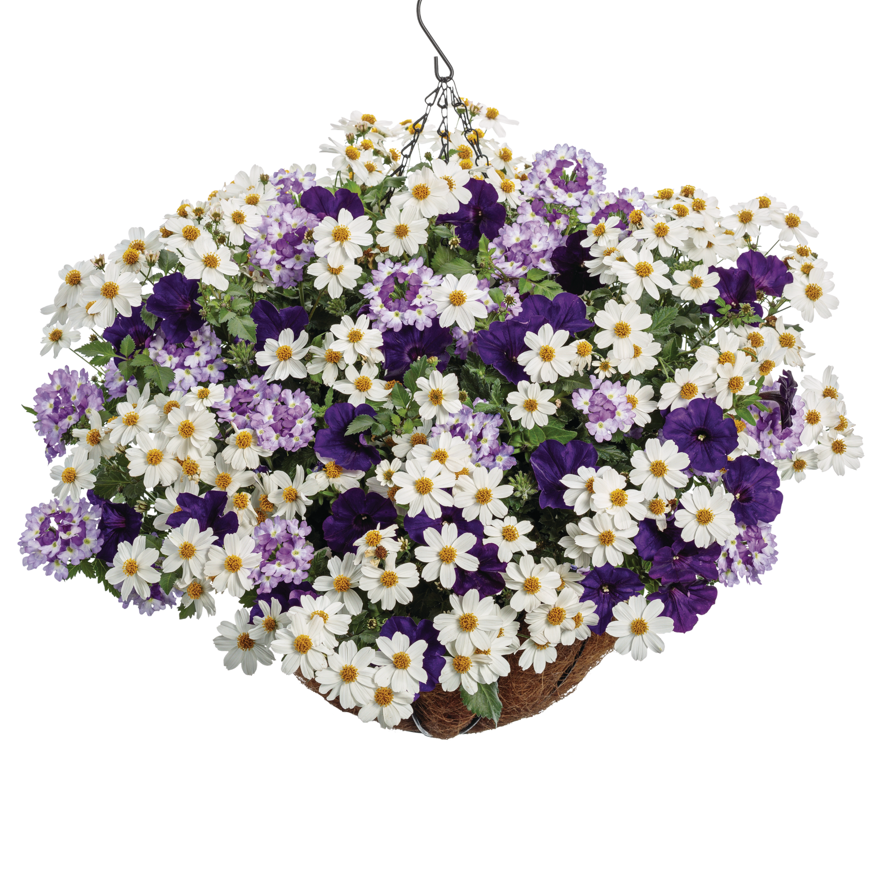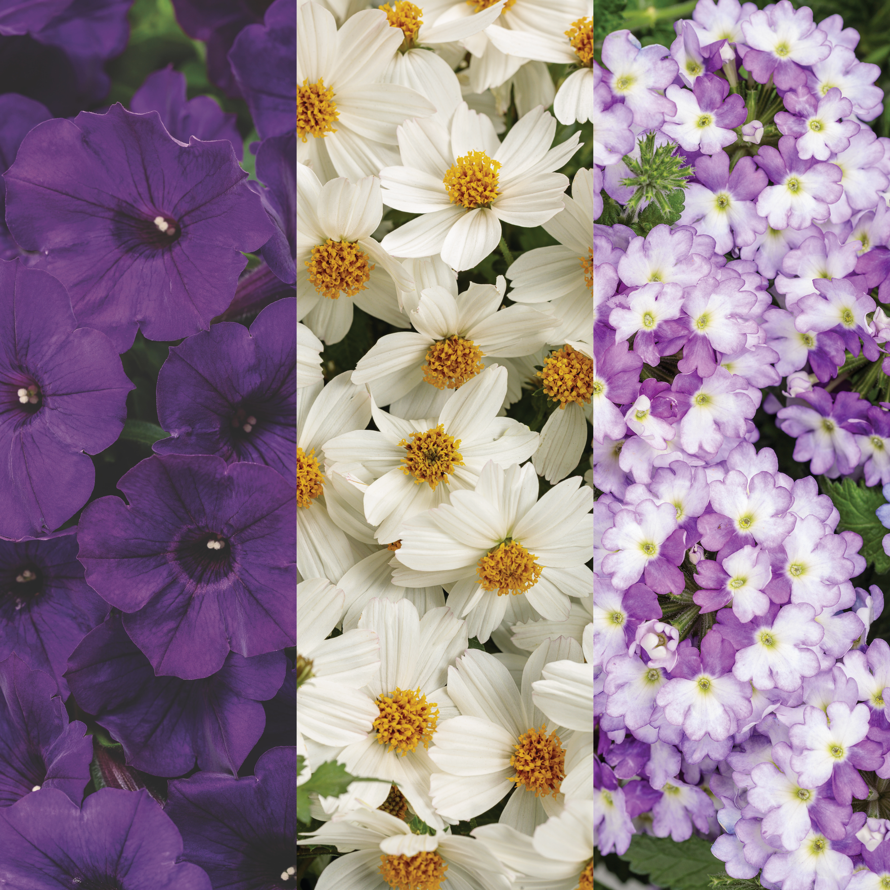 Supertunia® Royal Velvet® Petunia (x2), Superbena Sparkling® Amethyst Verbena (x2) and Campfire® Marshmallow™ Apache Beggarticks (Bidens hybrid) (x1)