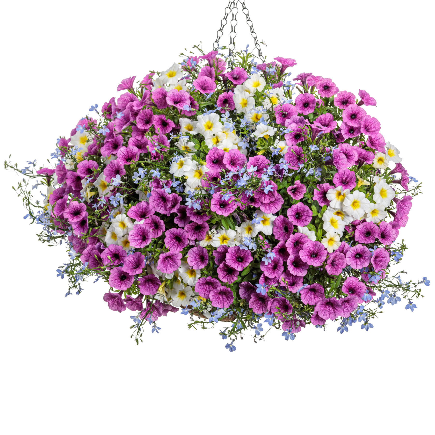 Supertunia Mini Vista® Plum Veined (Petunia hybrid) (x2), Superbells® Over Easy™ Calibrachoa (x2) and Laguna® Sky Blue Lobelia (Lobelia erinus) (x2)