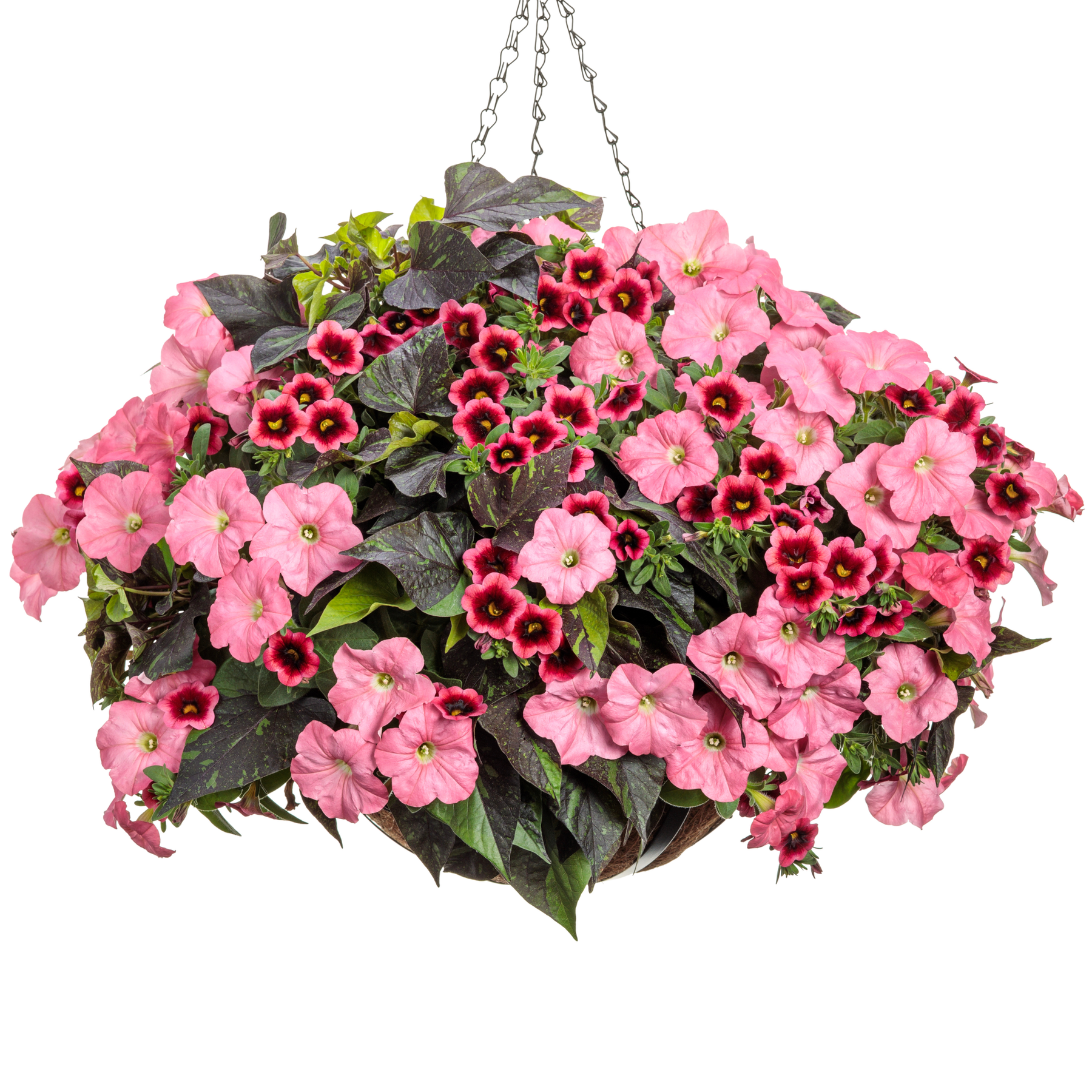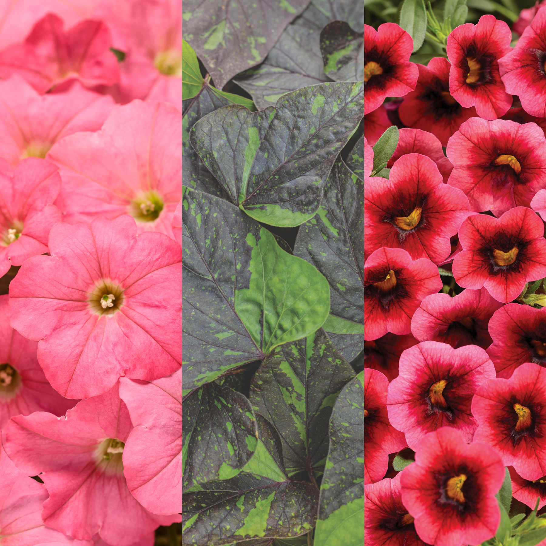 Supertunia® Bermuda Beach® Petunia (x2), Sweet Caroline Sweetheart Shadowstorm™ Sweet Potato Vine (Ipomoea) (x2) and Superbells® Watermelon Punch™ Calibrachoa (x2)