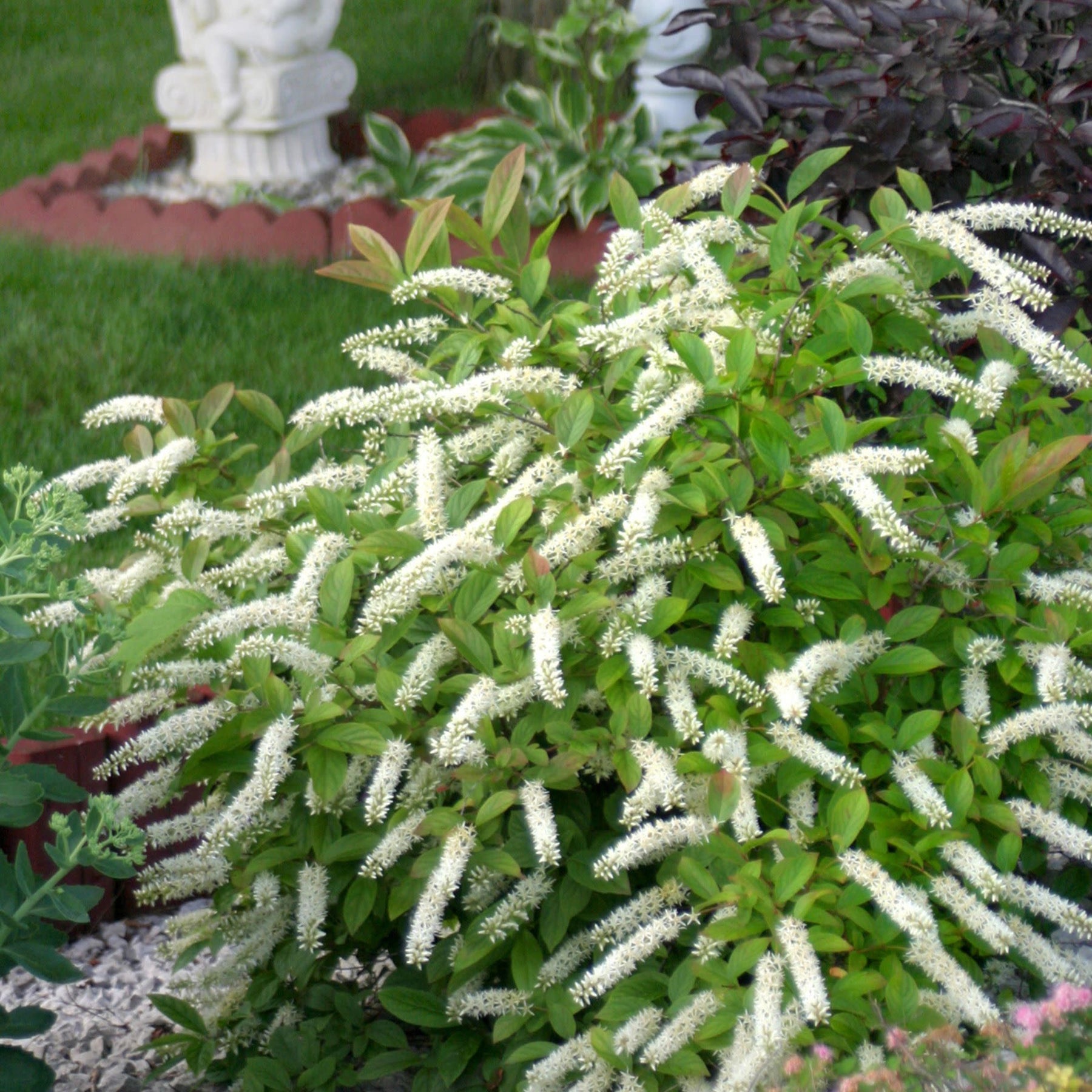 In summer, Little Henry® comes to life with fragrant, white flower spikes that attract pollinators and add gentle movement to the garden. As the seasons shift, it delivers a vibrant show of red fall foliage—offering a native alternative to burning bush with ecological benefits and no invasive tendencies.