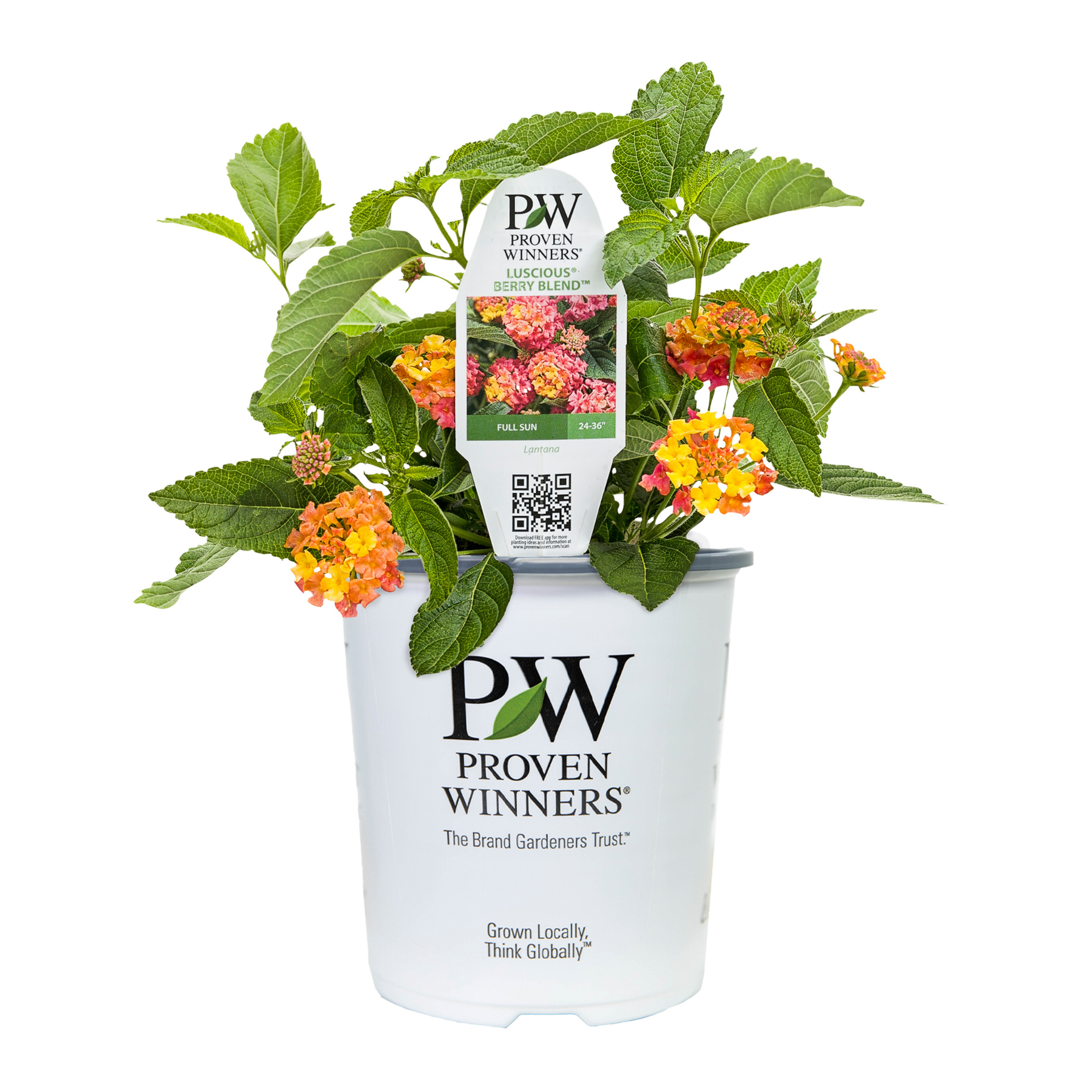 Luscious® Berry Blend™ Lantana is a vibrant, heat-loving beauty that thrives in warm weather, producing an abundance of colorful blooms. Small, delicate fuchsia, orange, and yellow flowers form stunning clusters, creating a striking contrast against its dark, glossy foliage. As the temperatures rise, this hardy plant flourishes even more, providing non-stop color throughout the season. Perfect for containers, landscapes, and groundcover, Luscious® Berry Blend™ adds a splash of tropical charm to any garden or outdoor space, attracting pollinators and brightening up any corner with its lively hues.