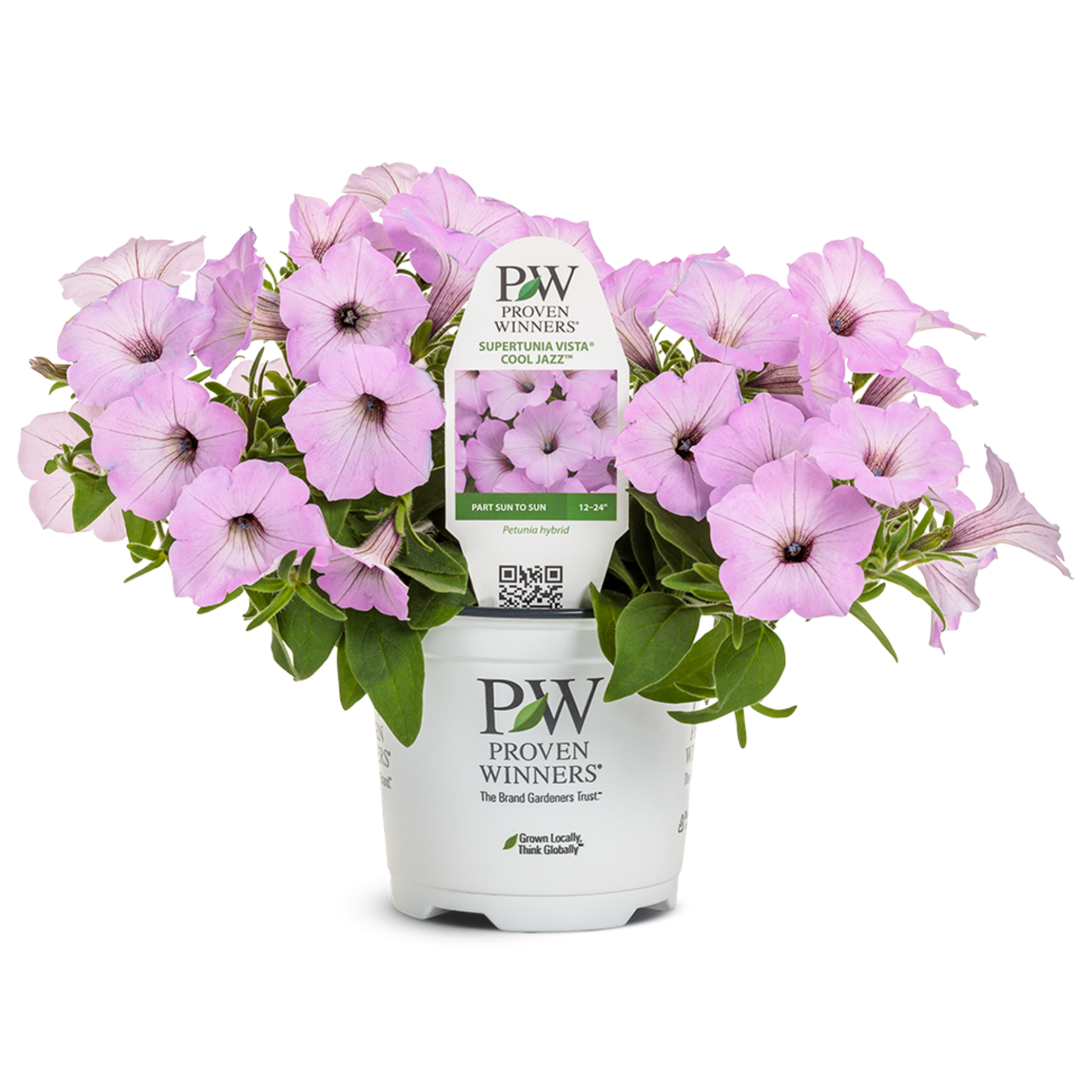 If you’ve appreciated the vigor of Supertunia Vista® Jazzberry®, you’ll love Cool Jazz™ for its soft orchid pink blooms and equally robust growth. This variety forms a large, upright-spreading mound that becomes completely covered in flowers from planting through frost—no deadheading required.