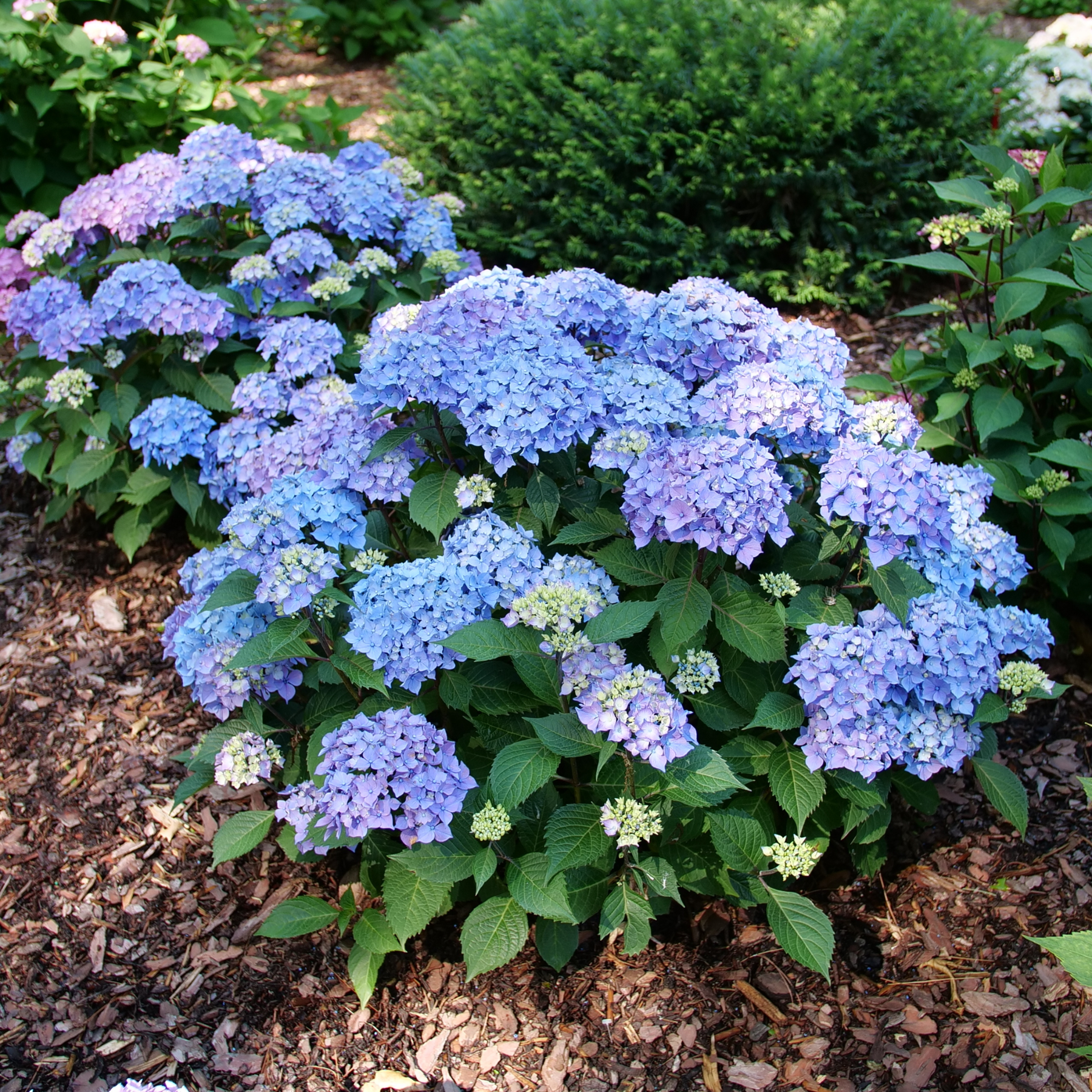 Care: Fertilize with Proven Winners Continuous Release Plant Food in spring and mid-summer. Pruning is not generally recommended. Although its flower buds are formed on both old wood and new wood, any cuts will impact its flowering potential. Dead or damaged wood can be removed at any time, just cut back to a set of leaves. If you’d like to prune to shape the plant, this can be done when the plant is starting to break dormancy in late winter or early spring, just look for swelling green leaf buds. Deadheading can be done after bloom, just follow the stem down to the first set of leaves and cut ¼ of an inch above them. Soil pH affects flower color, expect pink blooms in alkaline soils and blue to purple blooms in acidic soils where aluminum is present.