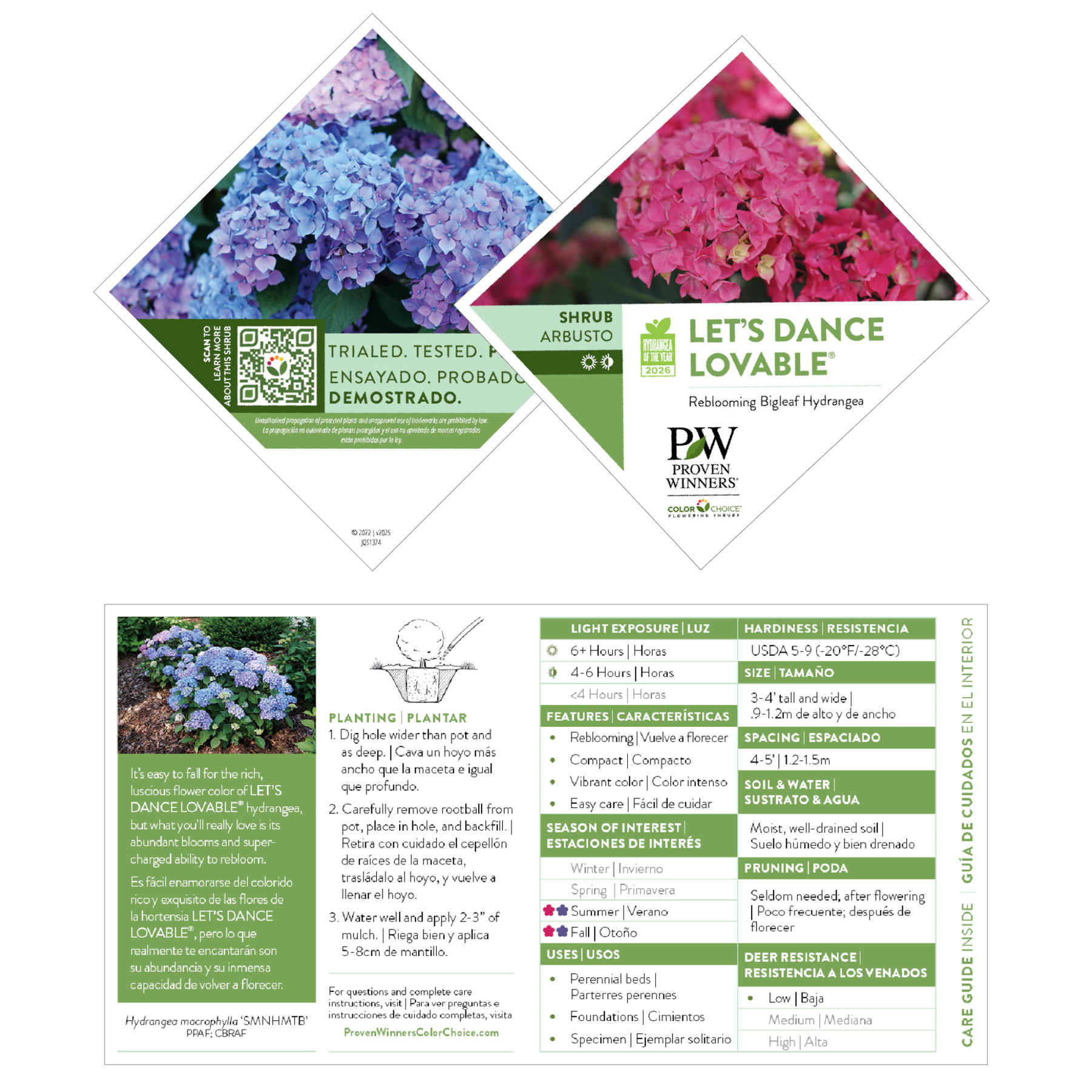 The Let's Dance Lovable® Bigleaf Hydrangea is so stunning and colorful that any photo of it looks edited! Like many Let's Dance hydrangeas, it's a larger mid-sized shrub that naturally mounds extremely well. It has warm green foliage, on top of which it shows off its true colors, and during the fall turns a vibrant red. Every bloom looks like its own flavor of cotton candy, with flowers of baby blue, soft pink, and lavender mixing together to create a truly dreamy shrub that's ready to perform.