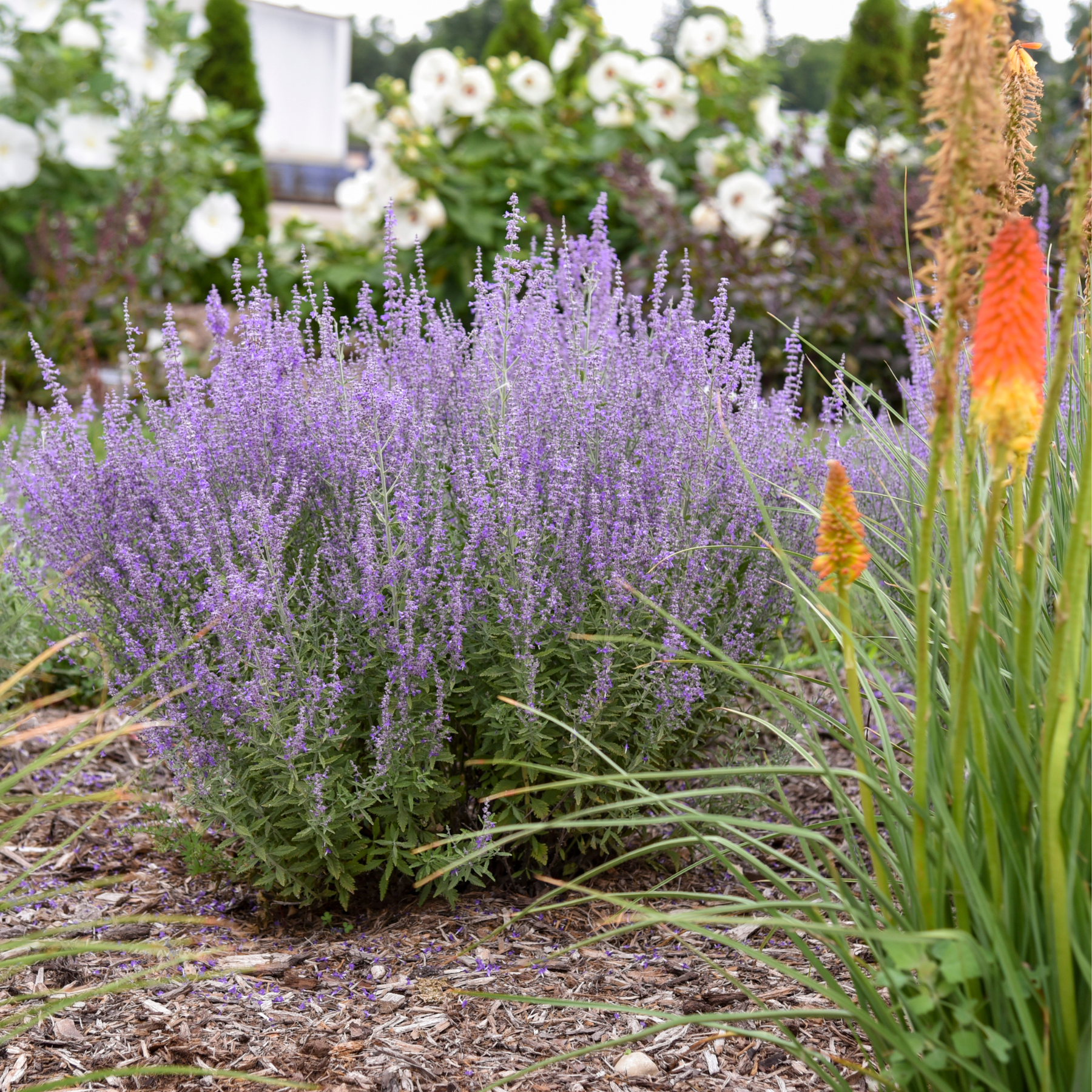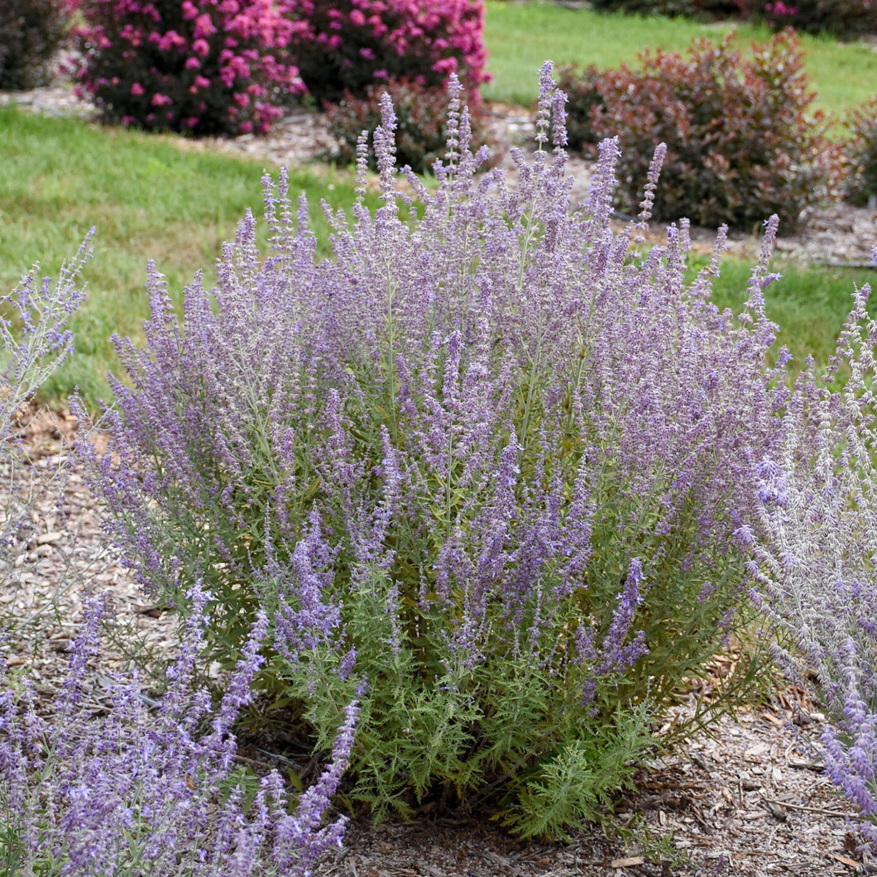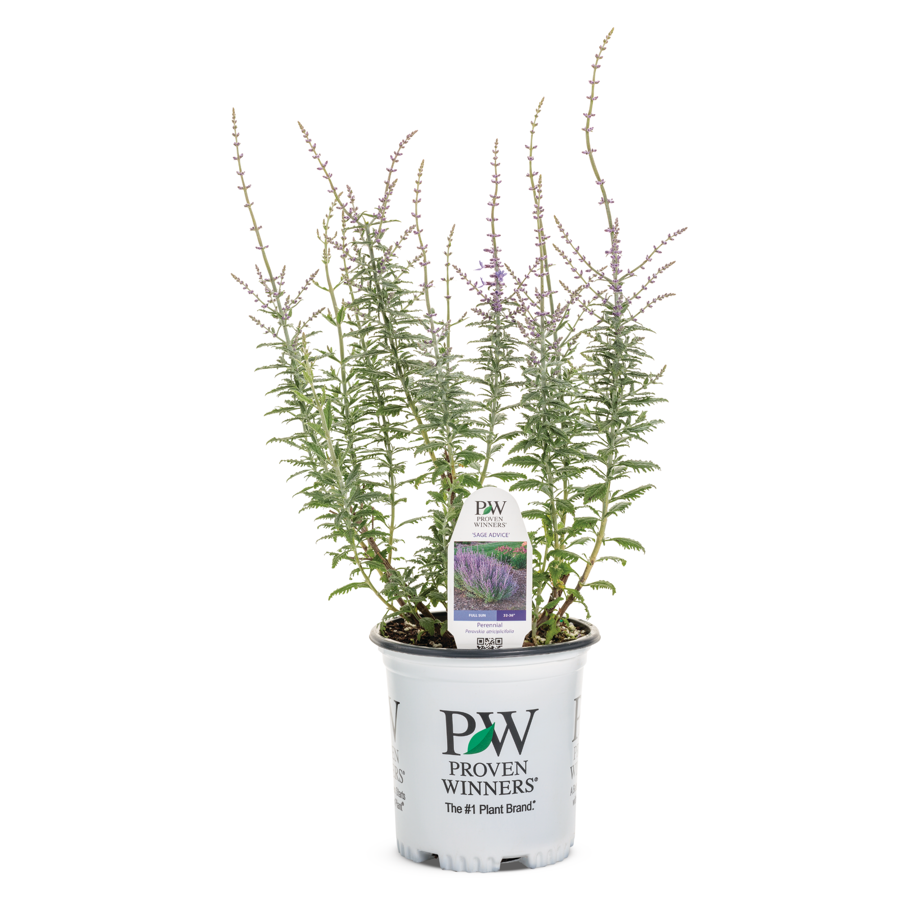 'Sage Advice' Russian Sage (Perovskia) displays rich lavender-purple flowers summer through fall held on minty-green foliage. Strong stems on an upright habit make it the perfect thriller in containers or the landscape. This fragrant plant is drought and salt-tolerant once established, attracts hummingbirds, and resists deer. A perfect perennial for hot, dry climates and also exceptionally cold hardy. Perovskia can be used in a wide variety of environments with little attention through the season - a reason they have long been a staple of landscapers. Expect these plants to be a little later to emerge in spring, but also to offer color well into fall.