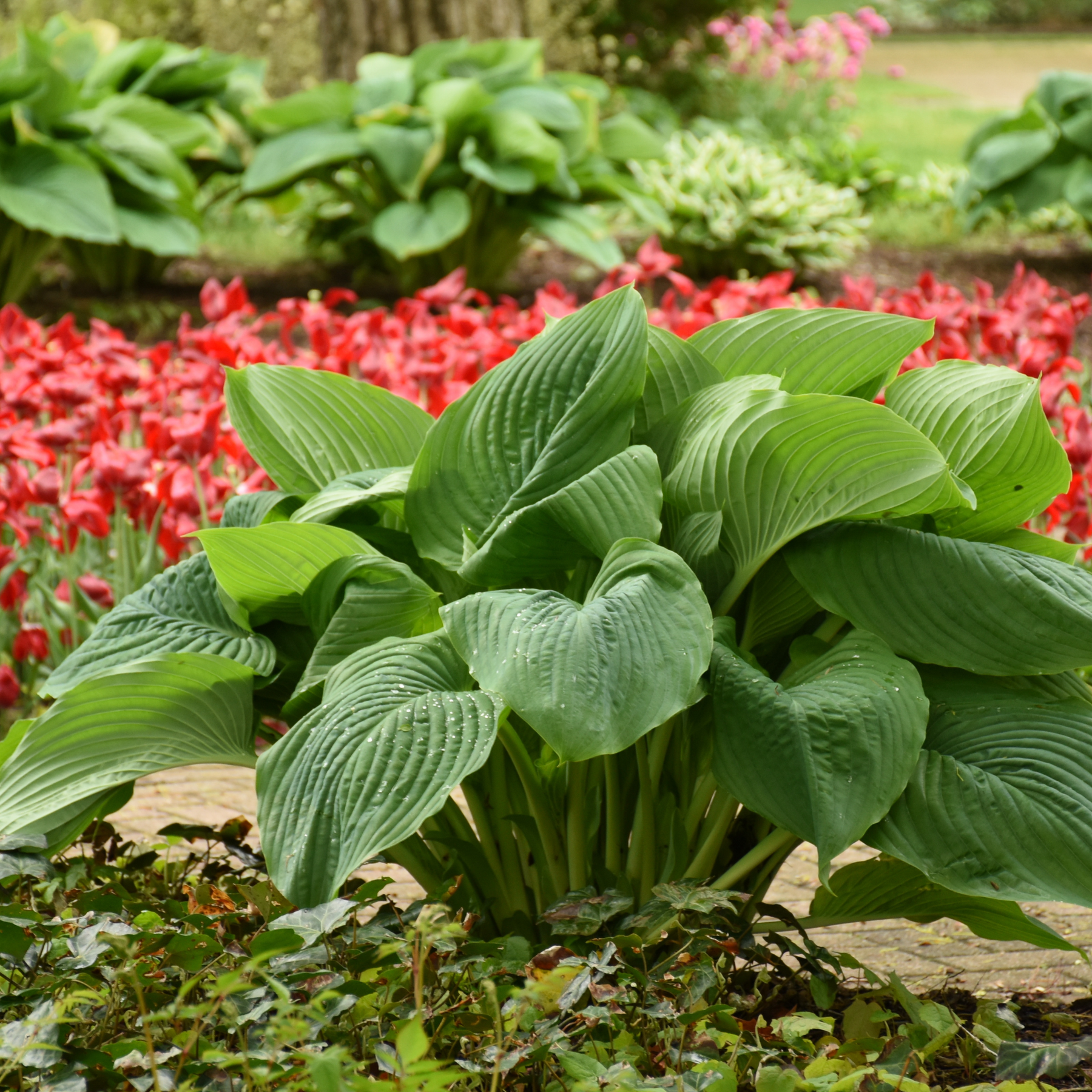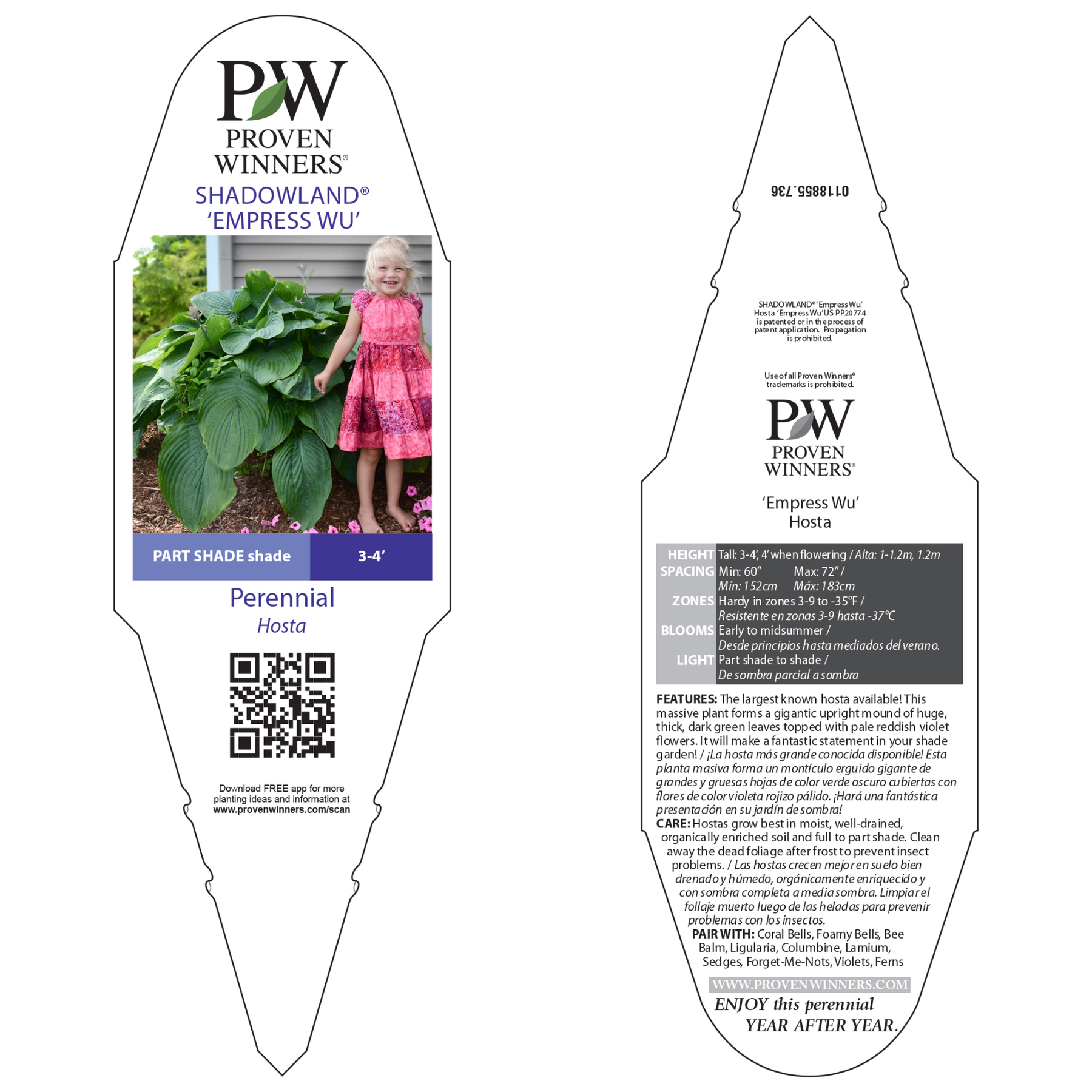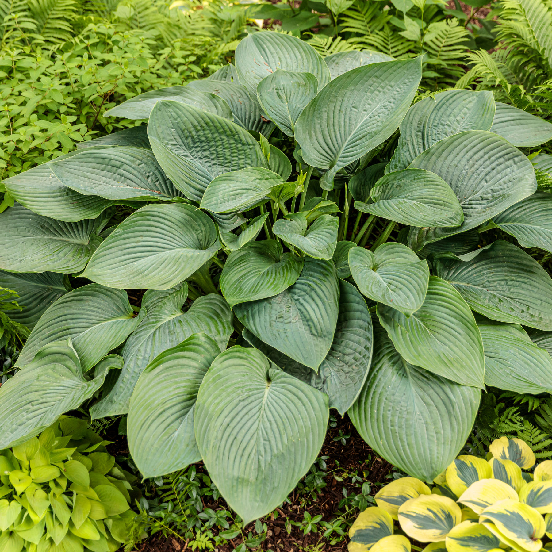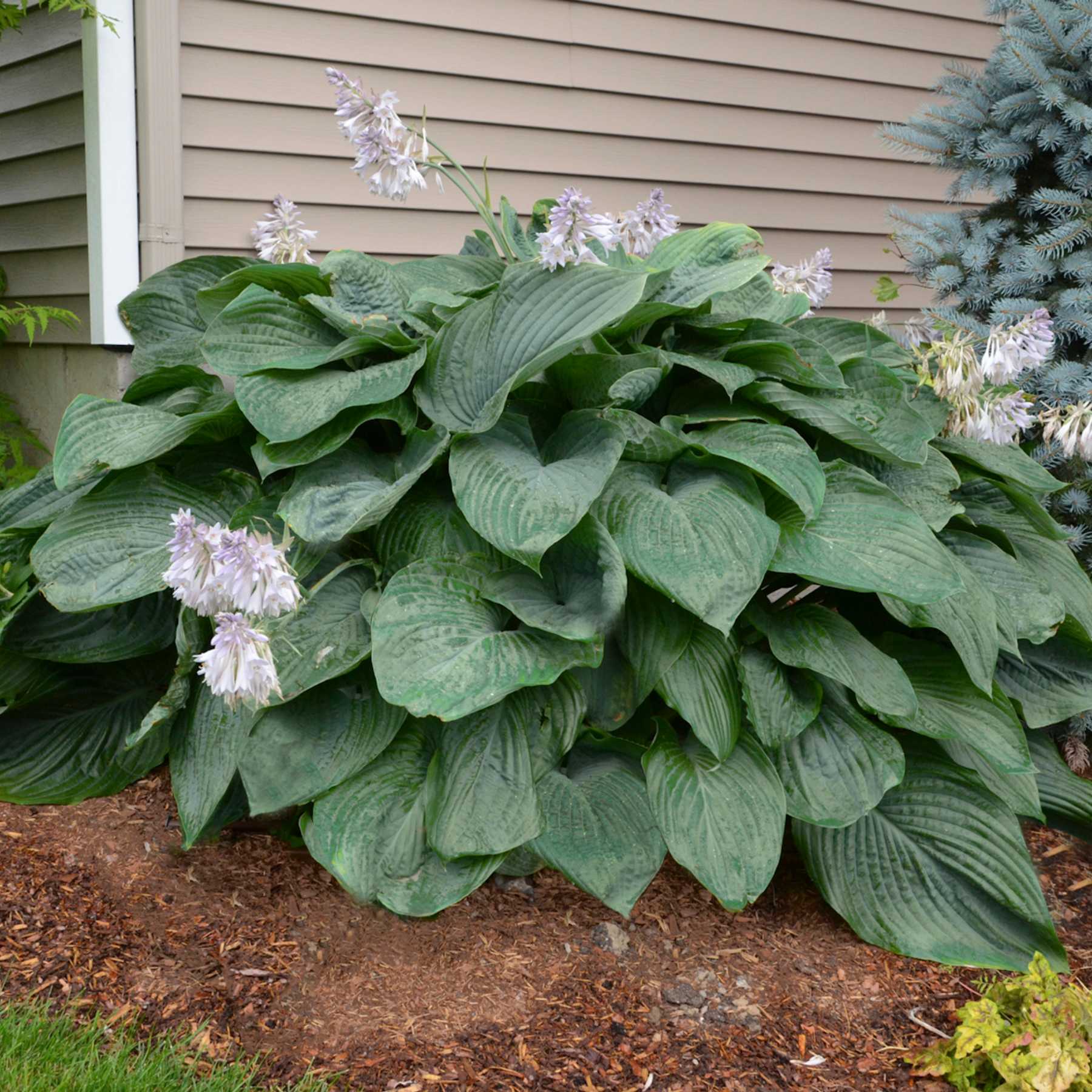 Shadowland® Empress Wu makes a fantastic statement in your shade garden with gigantic upright mounds of thick, dark green leaves topped with pale lavender-purple flowers in early summer. It is the largest known hosta available and provides interesting foliage for containers or landscapes.