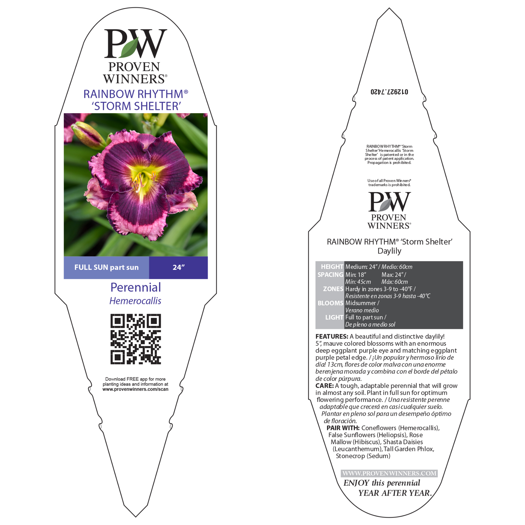 Rainbow Rhythm® 'Storm Shelter' is a dramatic and captivating daylily that will make a statement in any garden! Its 5-inch, mauve-colored blossoms are like a colorful storm on a calm day with a striking, deep eggplant purple eye at the center that creates a stunning contrast. The matching eggplant purple petal edge adds a bold finishing touch, giving it a moody yet enchanting vibe. A true standout, 'Storm Shelter' is perfect for adding a touch of drama and sophistication to your garden with its rich, dense color palette!