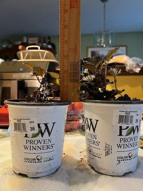 I don't know if I should laugh or cry. The description says that quart shrubs are 5-8" tall at shipment. Please see attached picture. This is unacceptable and I consider my order incomplete and I'm still waiting for my Wine Ninebark (Qty 2).