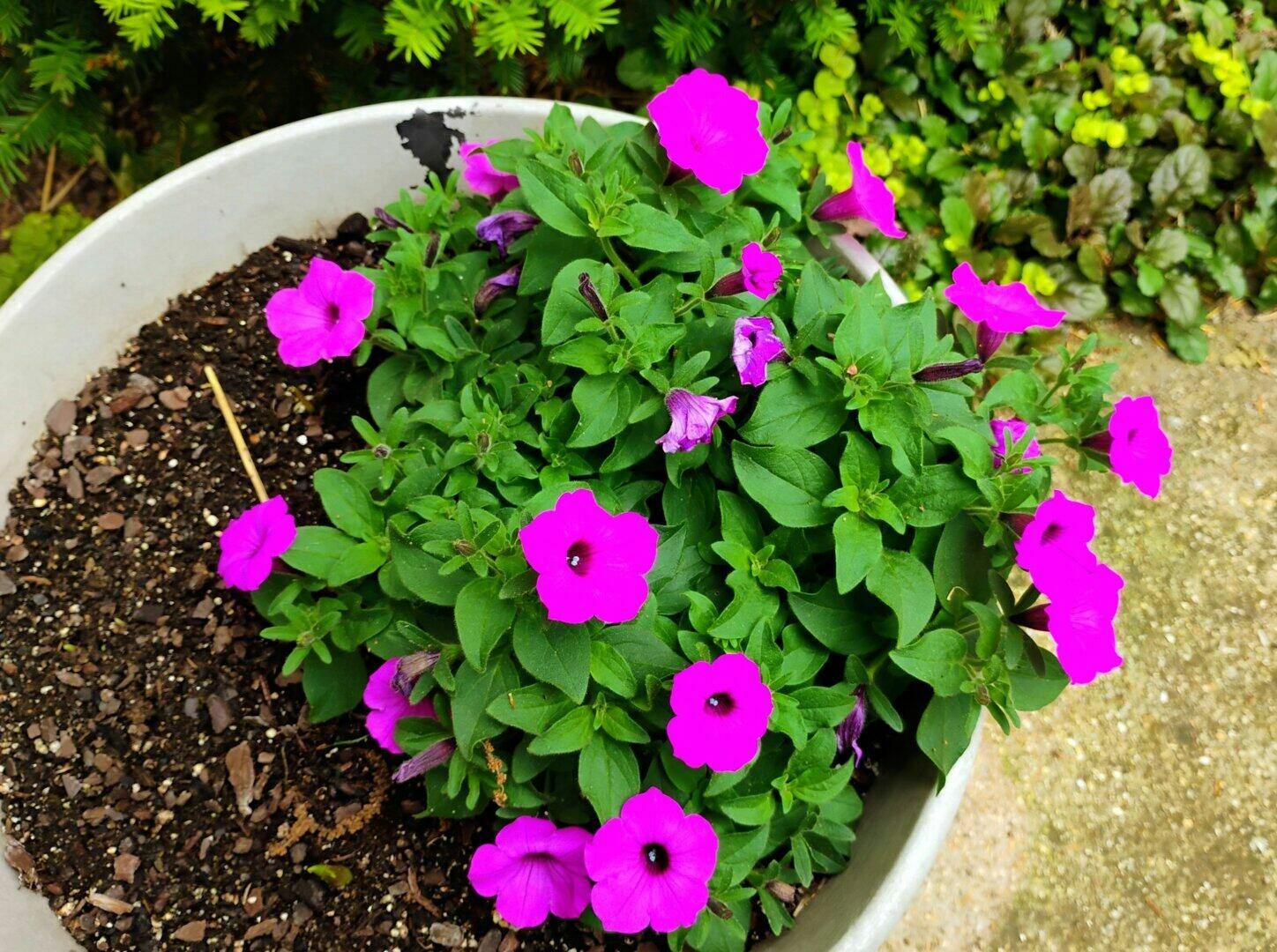 Tried Jazzberry Supertunia for the first time this year in my front yard pots. I love the color and the tidy compact growth habit of this Supertunia. I paired it with calla lily bulbs. It is fast becoming my favorite over Bubblegum. Although I did still plant Bubblegum in the backyard pots this year.