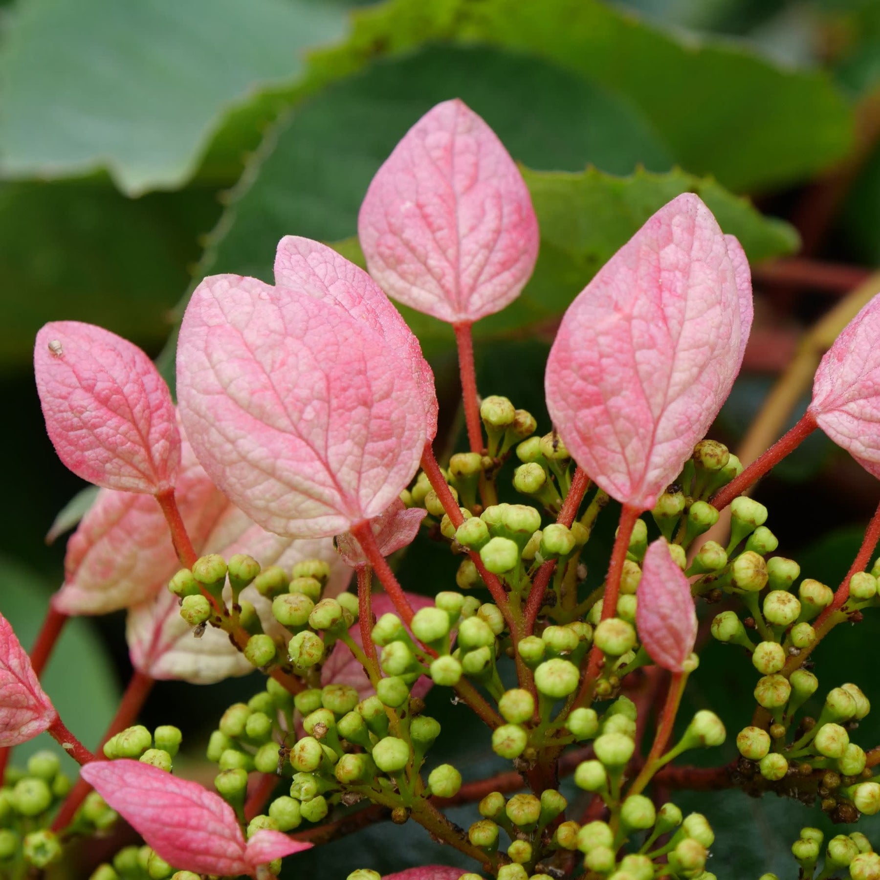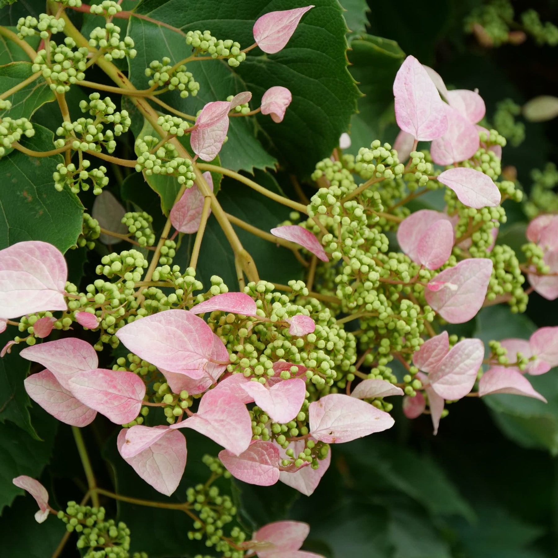Graceful and quietly stunning, Rose Sensation™ brings a touch of refined beauty to shaded spaces. This distinctive climbing vine is perfect for training up trees, arbors, or north-facing walls, where its soft pink sepals offer a charming and unexpected display. Ideal for woodland gardens or naturalistic landscapes, this slow-growing selection rewards patience with a truly elegant presence. Though it takes time to establish, once settled, it offers delicate, lace-like blooms and textured foliage that add depth and interest to any shaded setting.