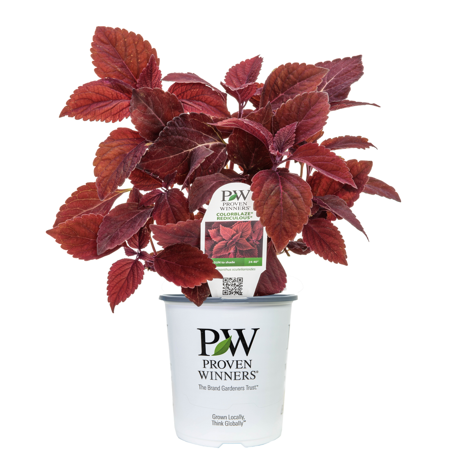 Transform your garden with the eye-catching ColorBlaze® Rediculous®! This award-winning plant boasts striking deep red foliage on well-branched plants, adding a bold pop of color to any landscape. Known for its heat tolerance, it thrives in warm conditions and is resistant to deer, making it a reliable choice for any garden. With no deadheading required, ColorBlaze Rediculous maintains its stunning appearance effortlessly. Additionally, it adapts beautifully as a houseplant when placed in a bright area, allowing you to enjoy its vibrant hues indoors as well. Elevate your outdoor spaces and brighten up your home with this spectacular plant!