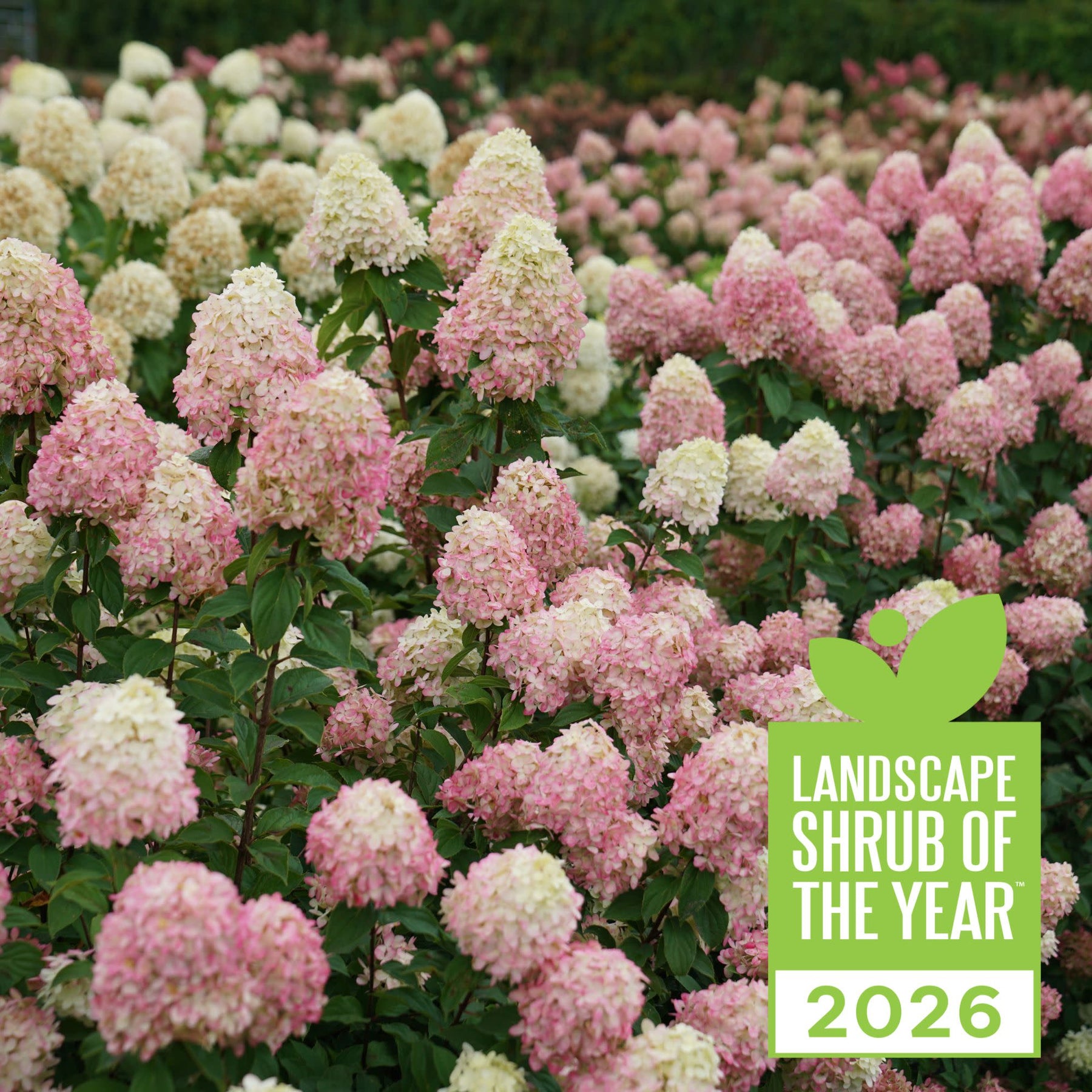 Limelight Prime® Hydrangea is an improved, more refined ‘Limelight’, with darker leaves, stronger stems, a more compact habit, and upright growth. It makes a great container plant. The blooms emerge a vivid lime-green and maintain that color until they transition into a bubblegum pink and then a deep punch pink. It also makes an excellent cut flower, fresh or dried. It is drought tolerant and blooms every year, even in cold climates.
