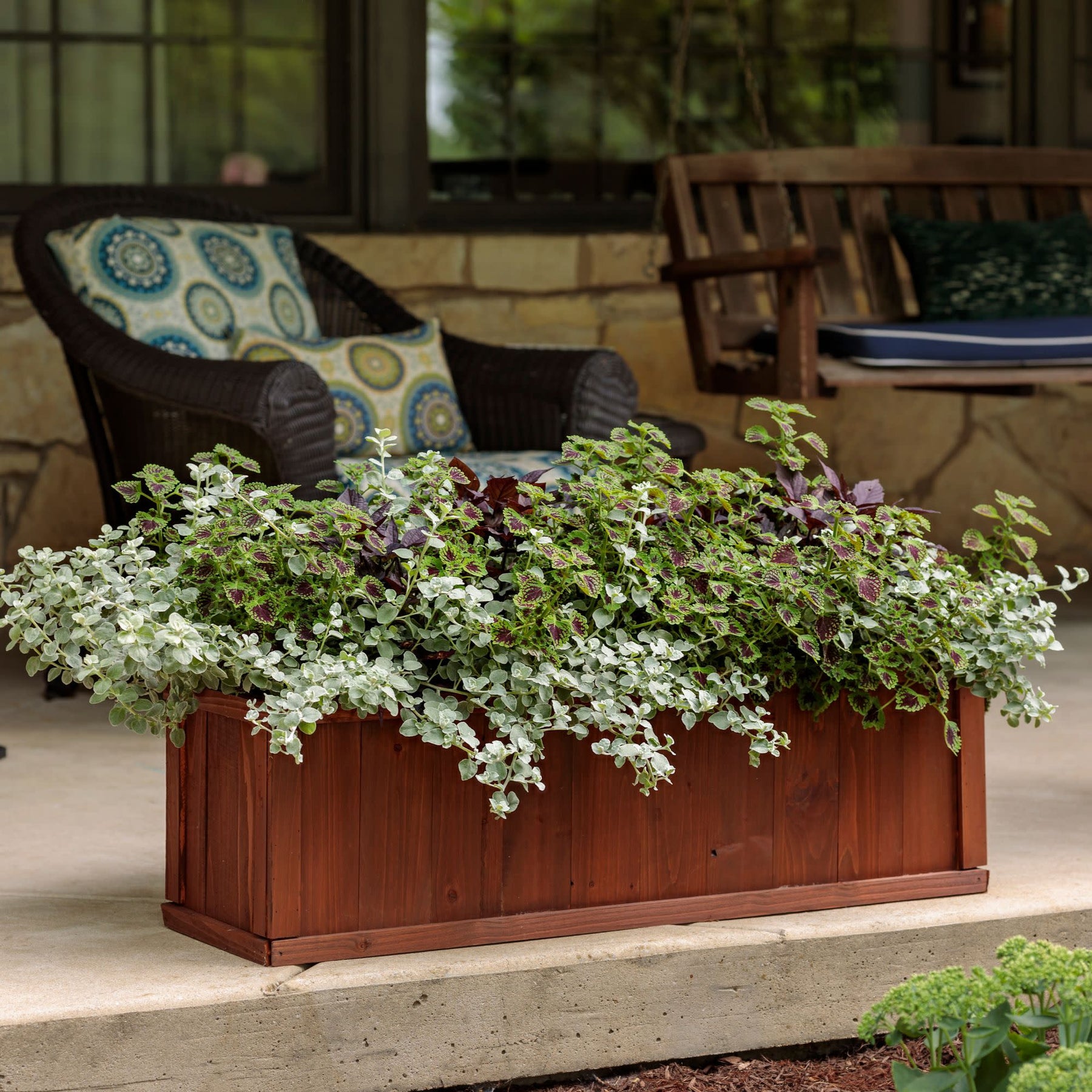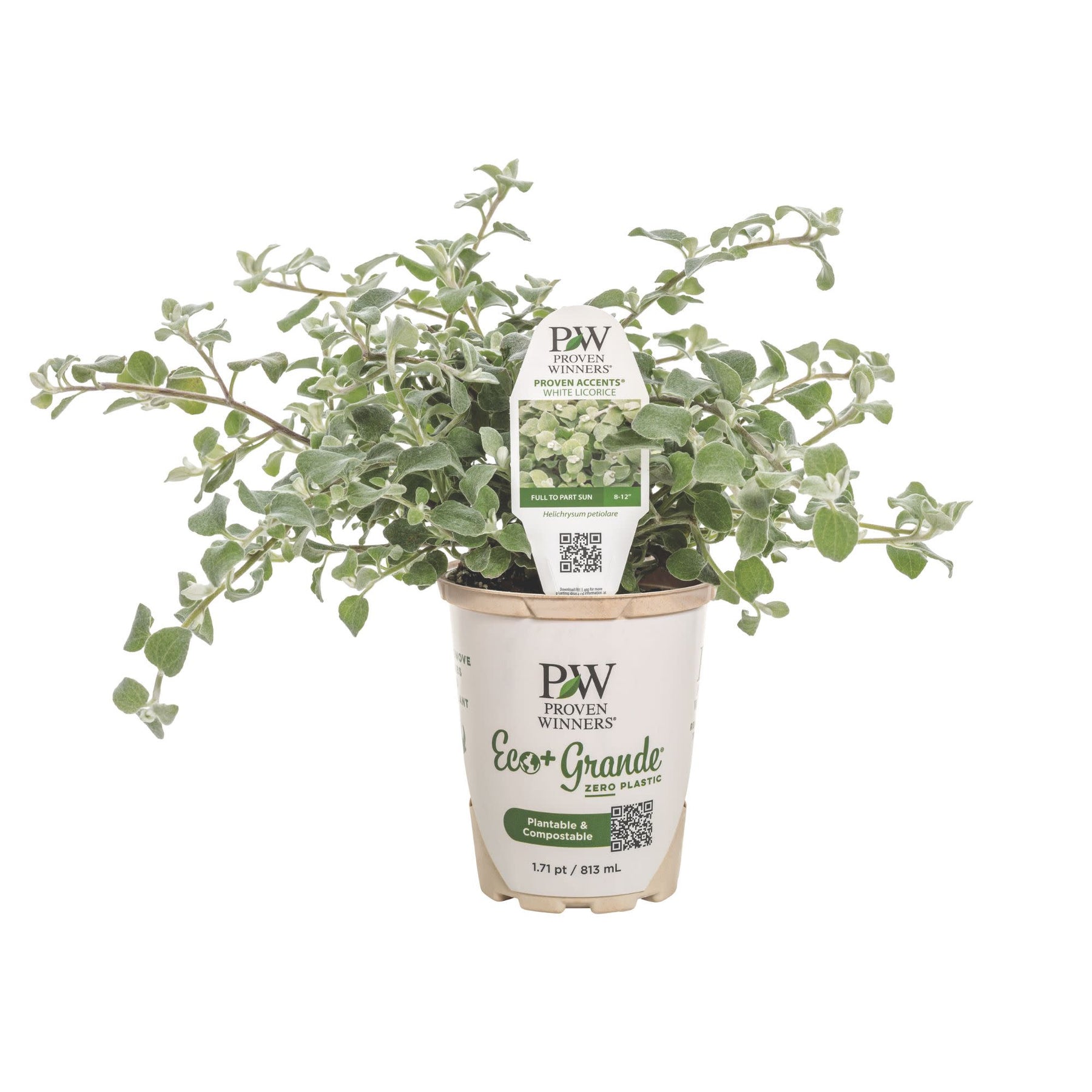 White Licorice is stunning with its silver-white, velvety foliage that adds a touch of elegance to any space. This heat and drought-tolerant beauty thrives in various conditions and requires minimal care, as it doesn't need deadheading to maintain its striking appearance. Perfect for hanging baskets, landscape beds, borders, and window boxes, White Licorice brings texture and visual interest wherever it's planted. Its soft, silvery foliage creates a sophisticated contrast with colorful blooms, making it an ideal choice for gardeners seeking a low-maintenance yet high-impact addition to their garden or home.