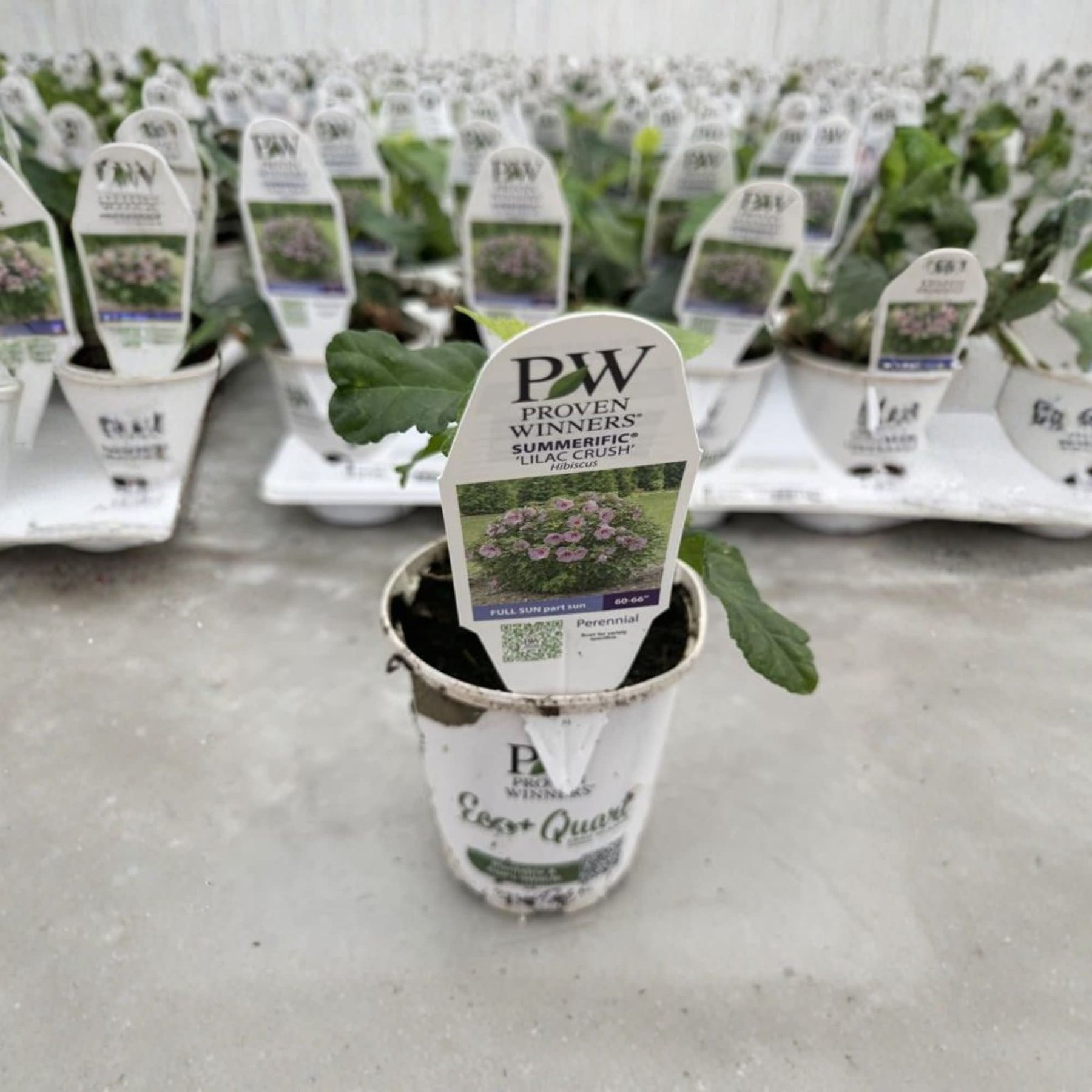 Care: Hibiscus love the sun and need moist, well-drained soil. Keeping these plants watered will result in larger flowers and lush foliage. Deadheading will improve the appearance of the plant, but is not necessary for continued bloom. It is best to plant Hibiscus in the garden before the heat of the summer arrives, and should be heavily mulched the first winter. In spring, cut back any remaining stems before new growth appears. Do not trim back in fall. A strong pair of loppers or a saw will be necessary to cut this plant back. Be advised that Hibiscus is always one of the last perennials to emerge in spring. Be patient, even if you think it is dead, it most likely isn't. Its vigorous growth rate more than makes up for this late start, however. Japanese beetles find these plants especially delicious. Fertilize with Proven Winners Continuous Release Plant Food in spring and mid-summer.