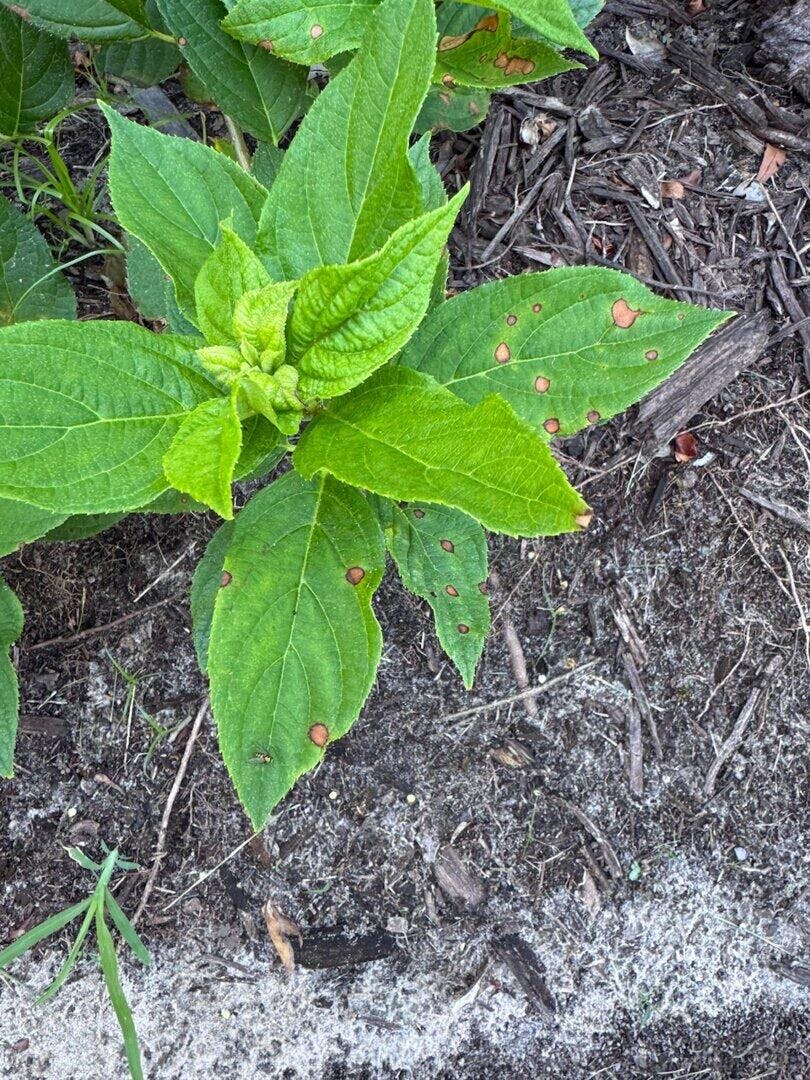 Thank you for sharing your review of your 'Limelight' Panicle Hydrangeas. We are happy to help! It looks like the spots are just on the old leaves and the new growth is not affected, which is a great sign! You can just prune off the leaves that have the spots on them.😊