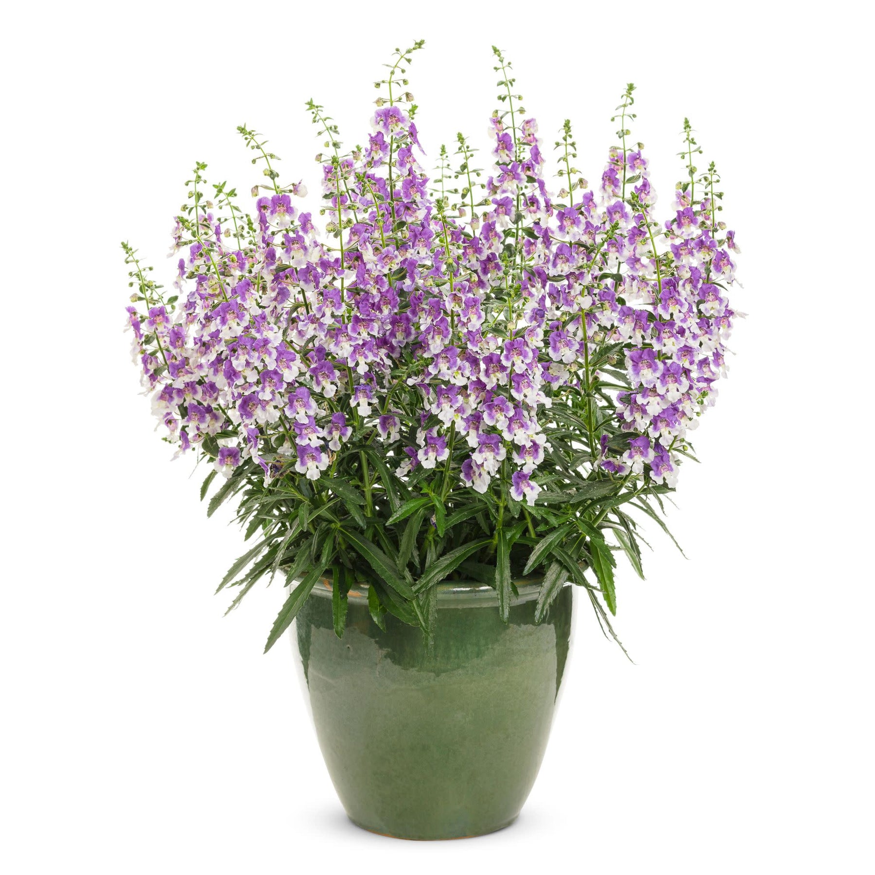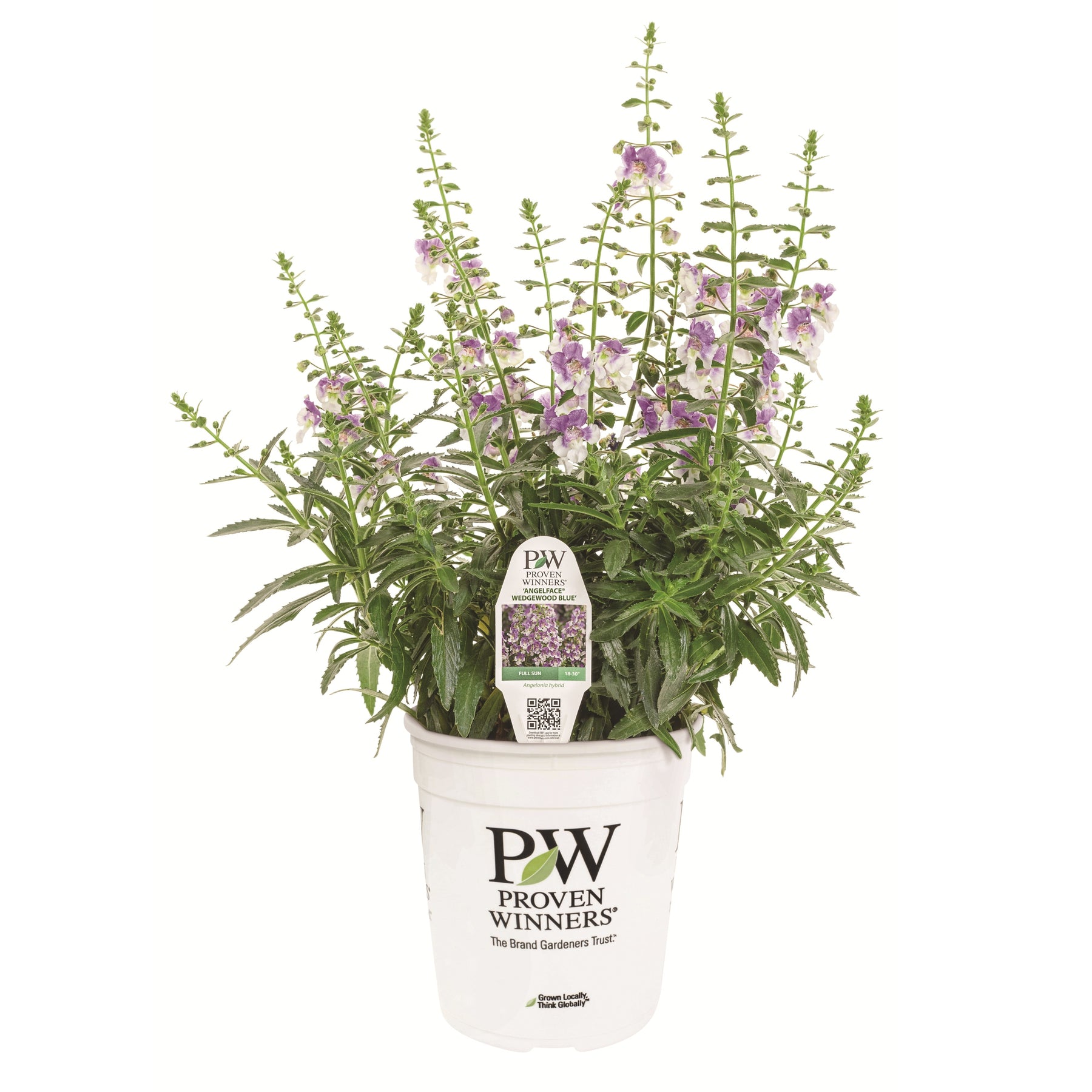 Angelface® Wedgwood Blue has lavender-blue and white flowers with grape-scented fragrant foliage all season. Angelonia are heat-loving plants that will grow most vigorously and bloom best when the heat is on. It is heat and drought tolerant when established. They are also deer resistant and great long-lasting cut flowers.