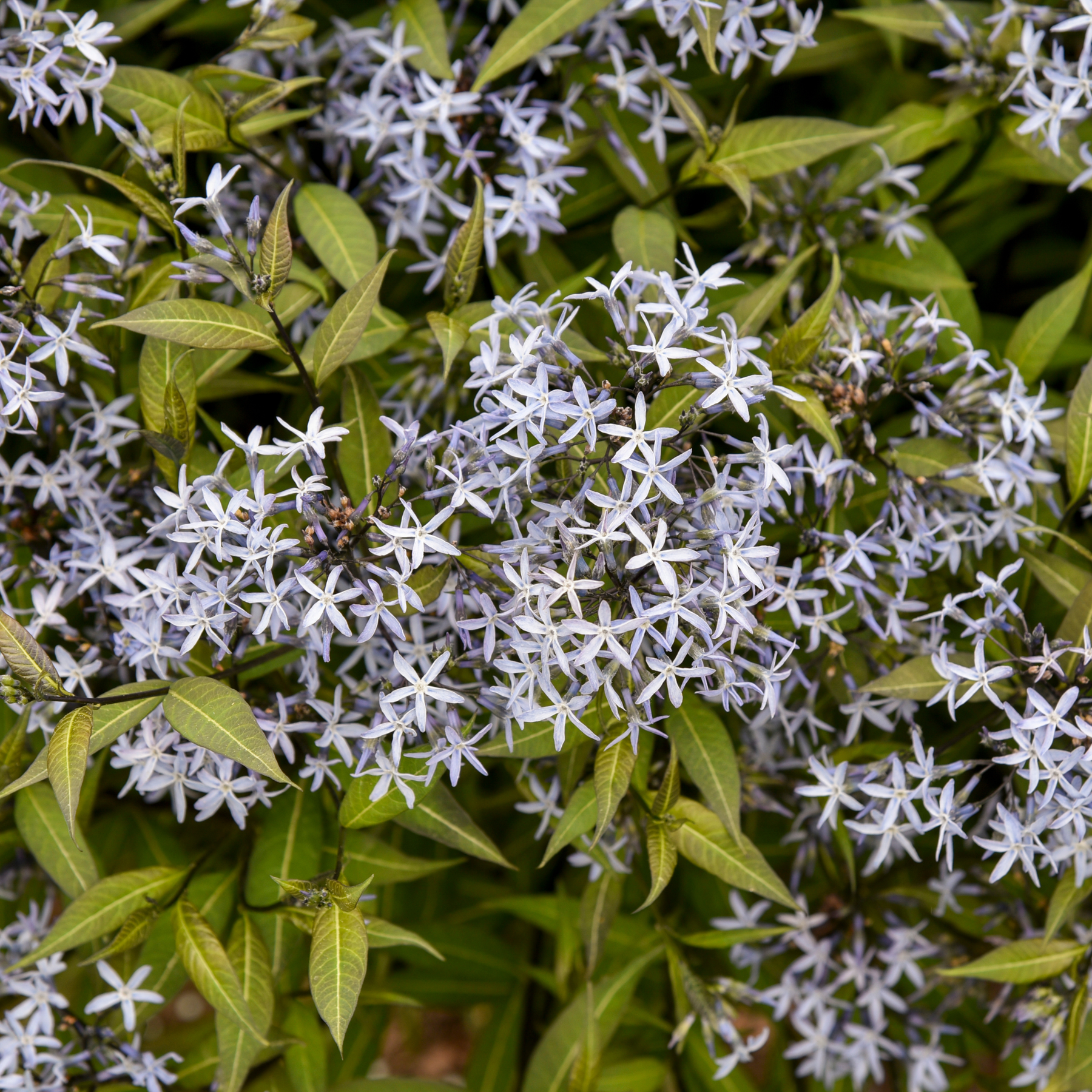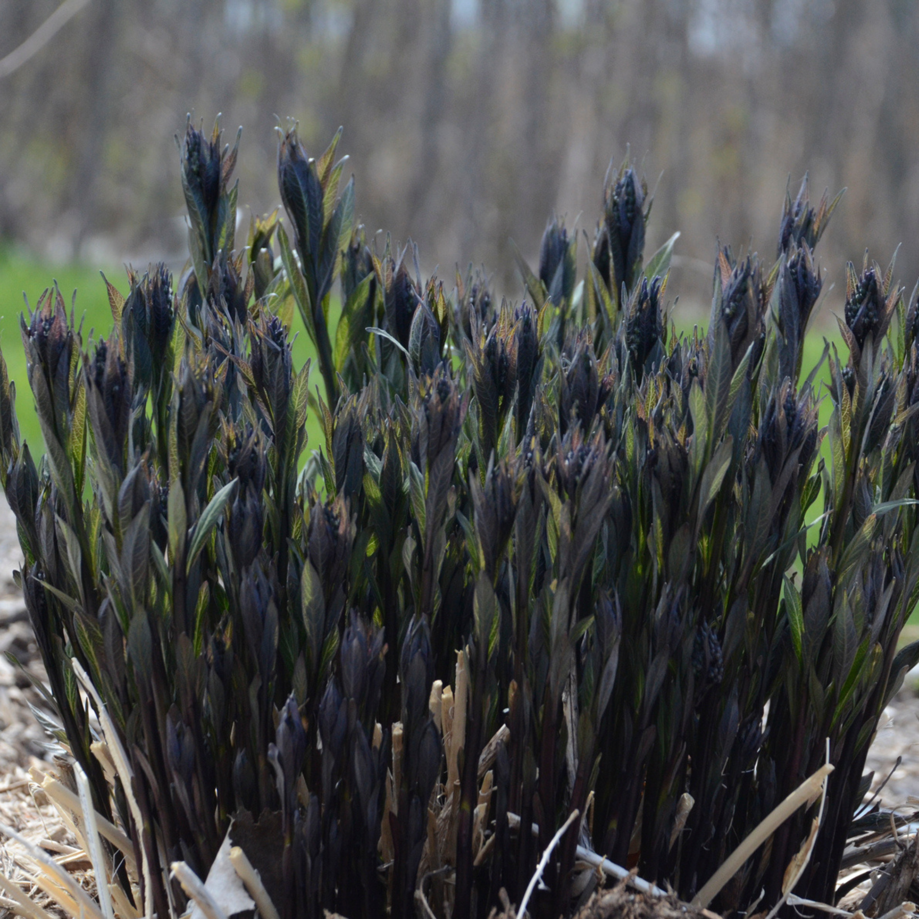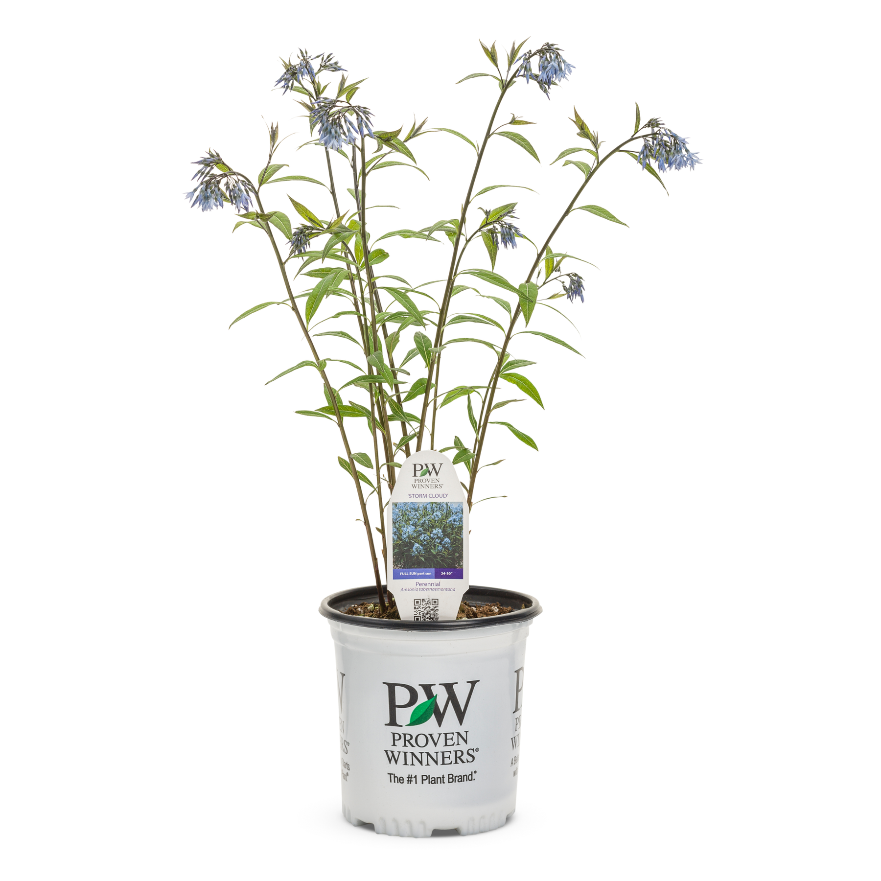 'Storm Cloud' Bluestar is a striking perennial that offers year-round beauty with its unique seasonal display. In spring, new stems emerge in a near-black hue, accompanied by dark green leaves veined with silver, creating a dramatic contrast. The stems retain their deep color throughout the season. Late spring brings a stunning profusion of light periwinkle blue, star-shaped flowers that completely cover the foliage, continuing to bloom for many weeks. While spring is the height of its beauty, 'Storm Cloud' maintains a strong garden presence throughout the summer and fall. Its wide, mounded habit makes it an excellent choice for replacing shrubs in the landscape, offering both visual appeal and structural interest.
