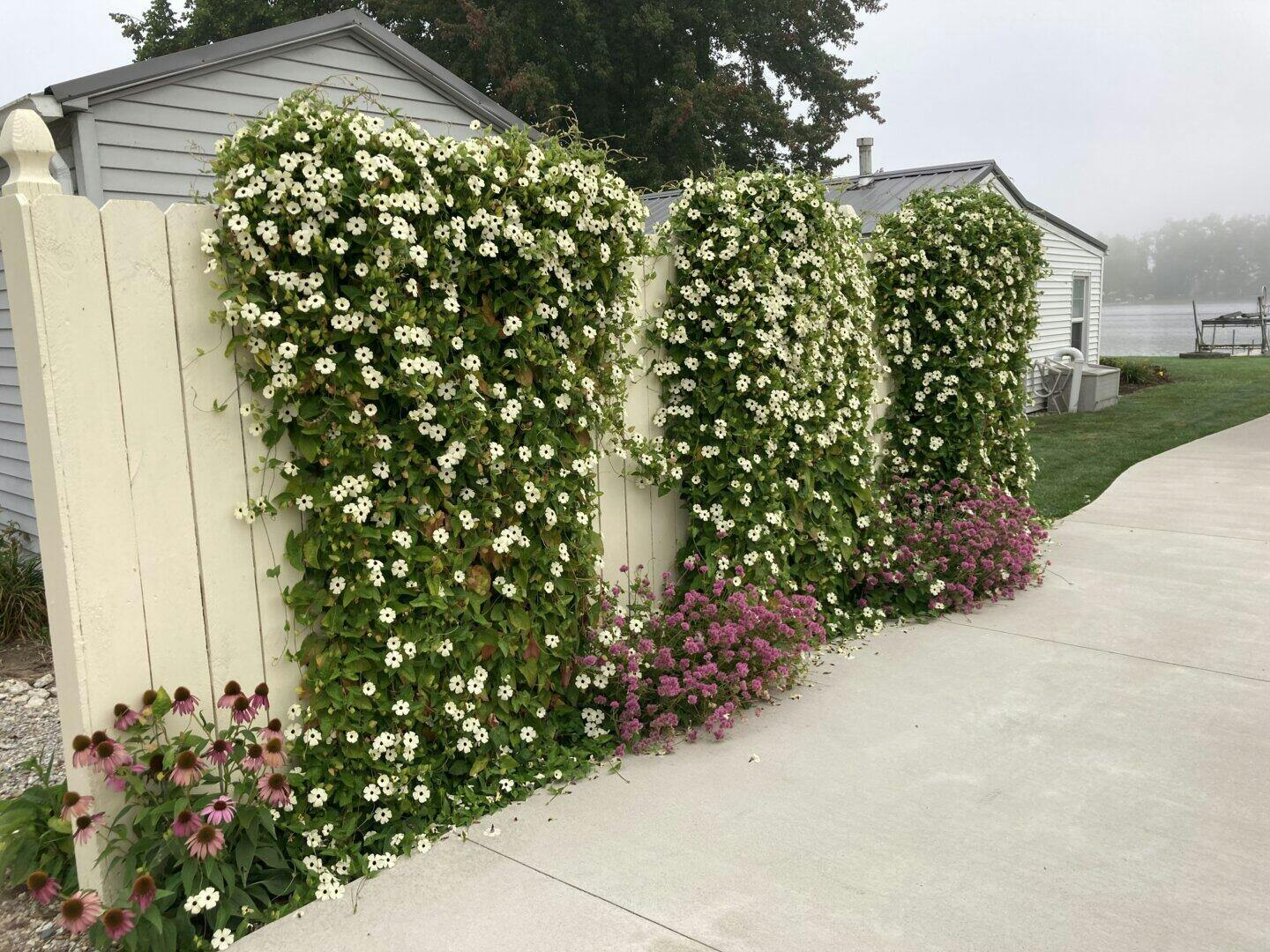 I grew 3 of these on my fence this year. They grew quickly and filled the space perfectly. They bloomed nonstop all summer and were still blooming after frost. Great performer.