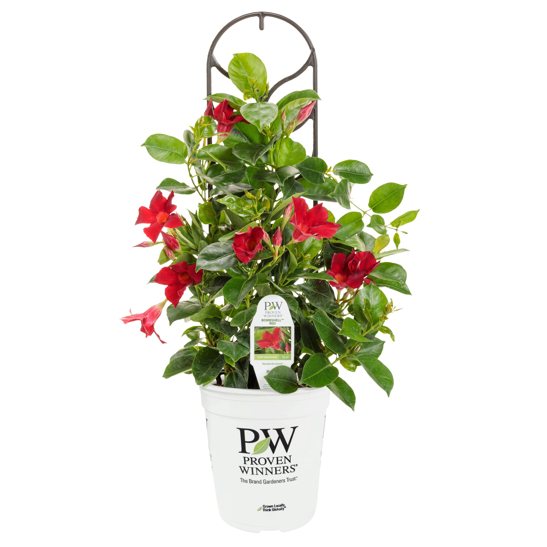 Care: Mandevilla love heat and warmth and well drained soil mixes with peat and perlite. Fertilize weekly with Proven Winners Water Soluble Plant Food for best performance.