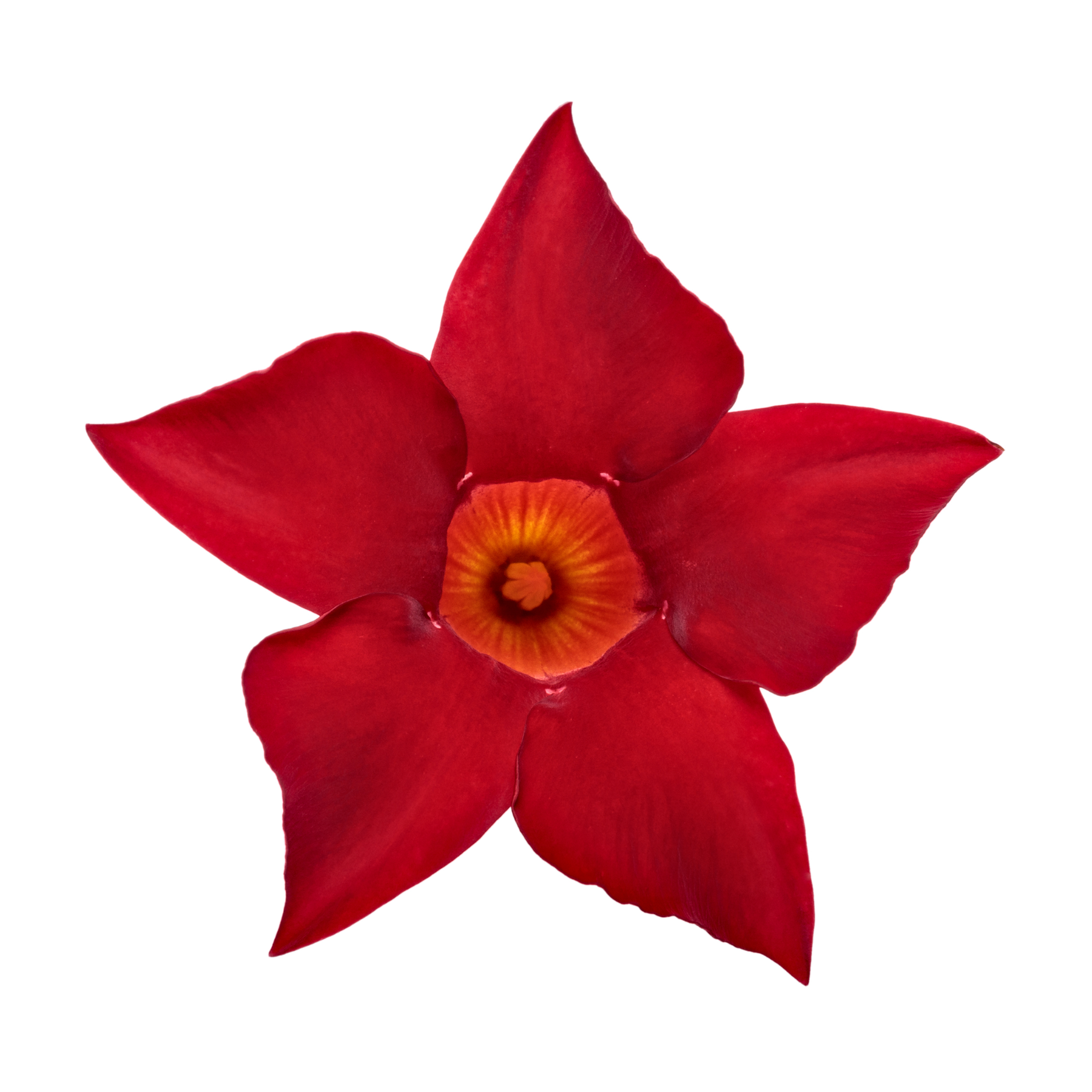 Mandevilla vines come in a wide range of gorgeous colors. These striking tropical blooms are a uniform shade of perfect red and come equipped with glossy green foliage that supports each flower nicely. It has a bushy habit and is suitable for containers, hanging baskets, balconies, bedding, or just about anywhere else you can envision it! Mandevilla is the perfect end-of-summer beauty as it thrives in heat and humidity, prolifically pushing out gorgeous color until your first hard frost. With its heat and drought tolerance, continuous blooms without deadheading, and disease resistance, it's an easy choice for every gardener!