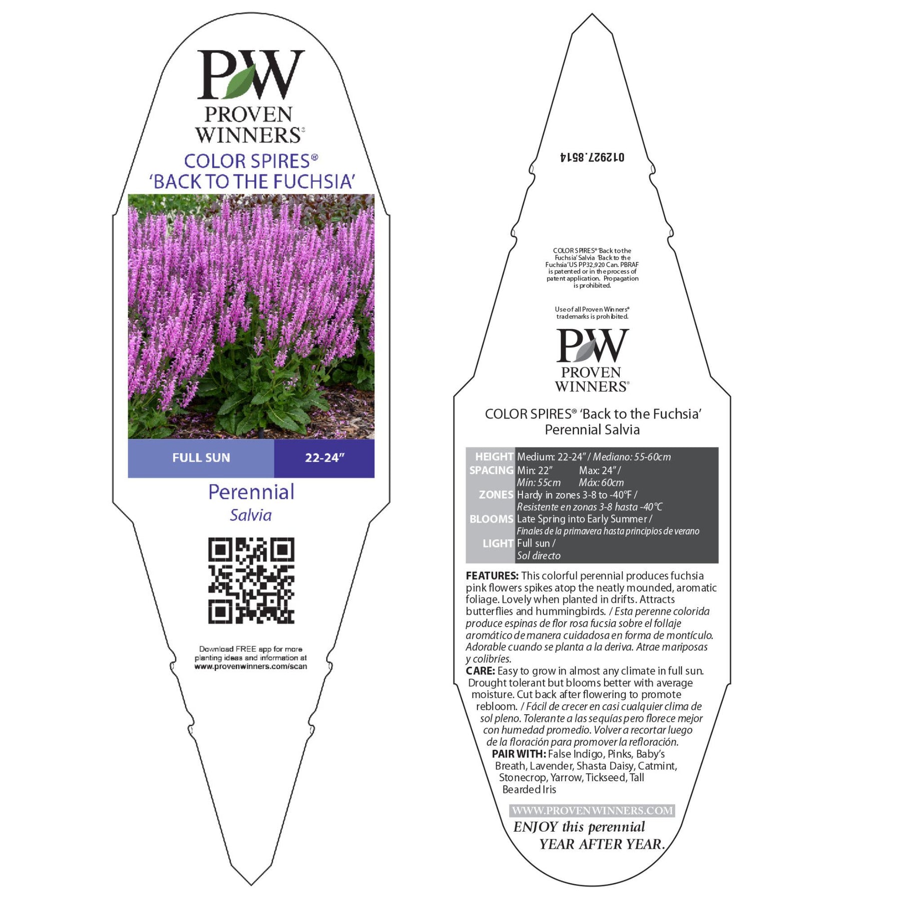 'Back to the Fuchsia' Perennial Salvia is a striking and vibrant addition to any garden. Its fuchsia pink flowers stand out beautifully against dark charcoal stems, creating a bold contrast atop its neatly mounded, aromatic foliage. This versatile variety thrives in borders, containers, and landscapes, bringing both color and fragrance to your outdoor spaces. Perfect for adding a pop of color and texture, 'Back to the Fuchsia' is a must-have for any garden enthusiast.