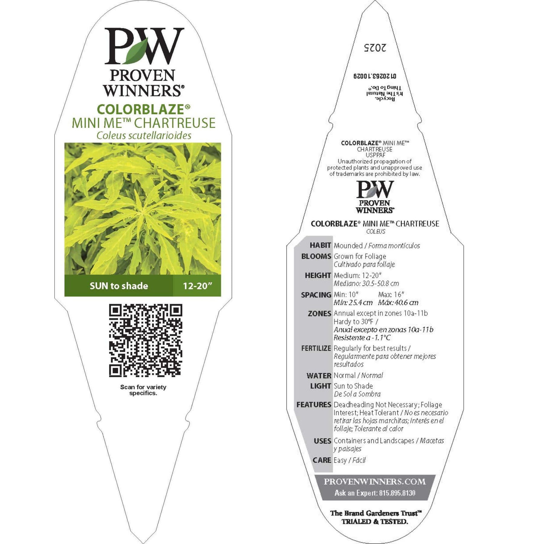 Add a pop of unique color to your garden with ColorBlaze® Mini Me™ Chartreuse Coleus! With its golden chartruese foliage, this well-branched plant thrives in both sun and shade. Heat-tolerant and late-blooming, it will continue to brighten up your landscape and containers well into the fall.