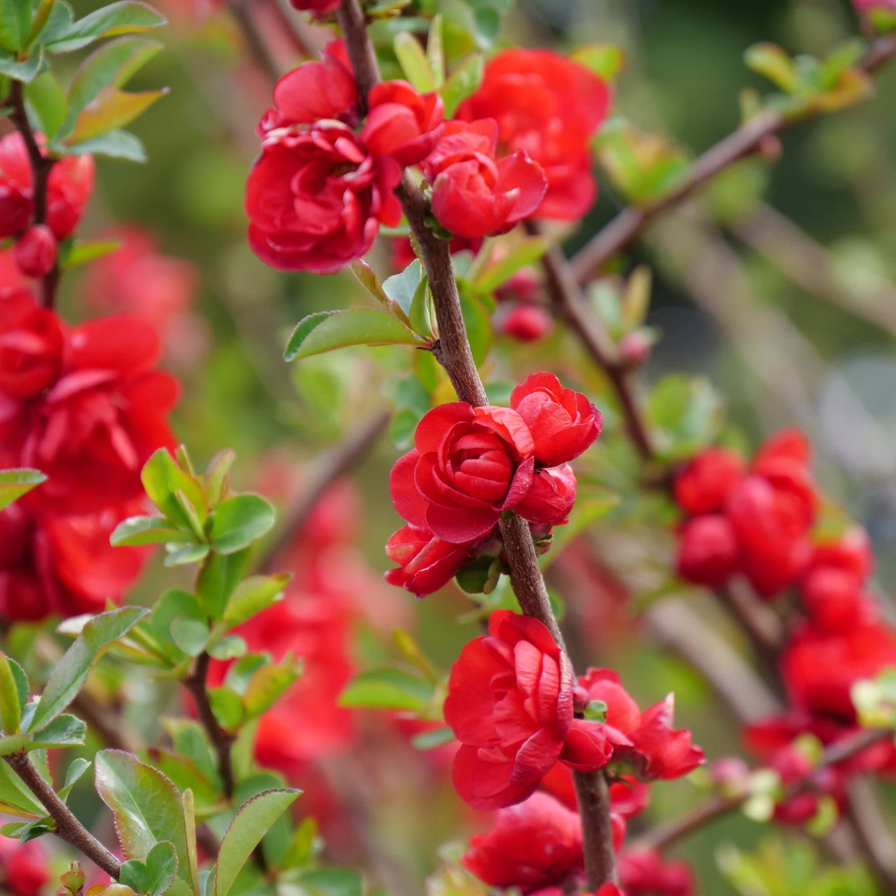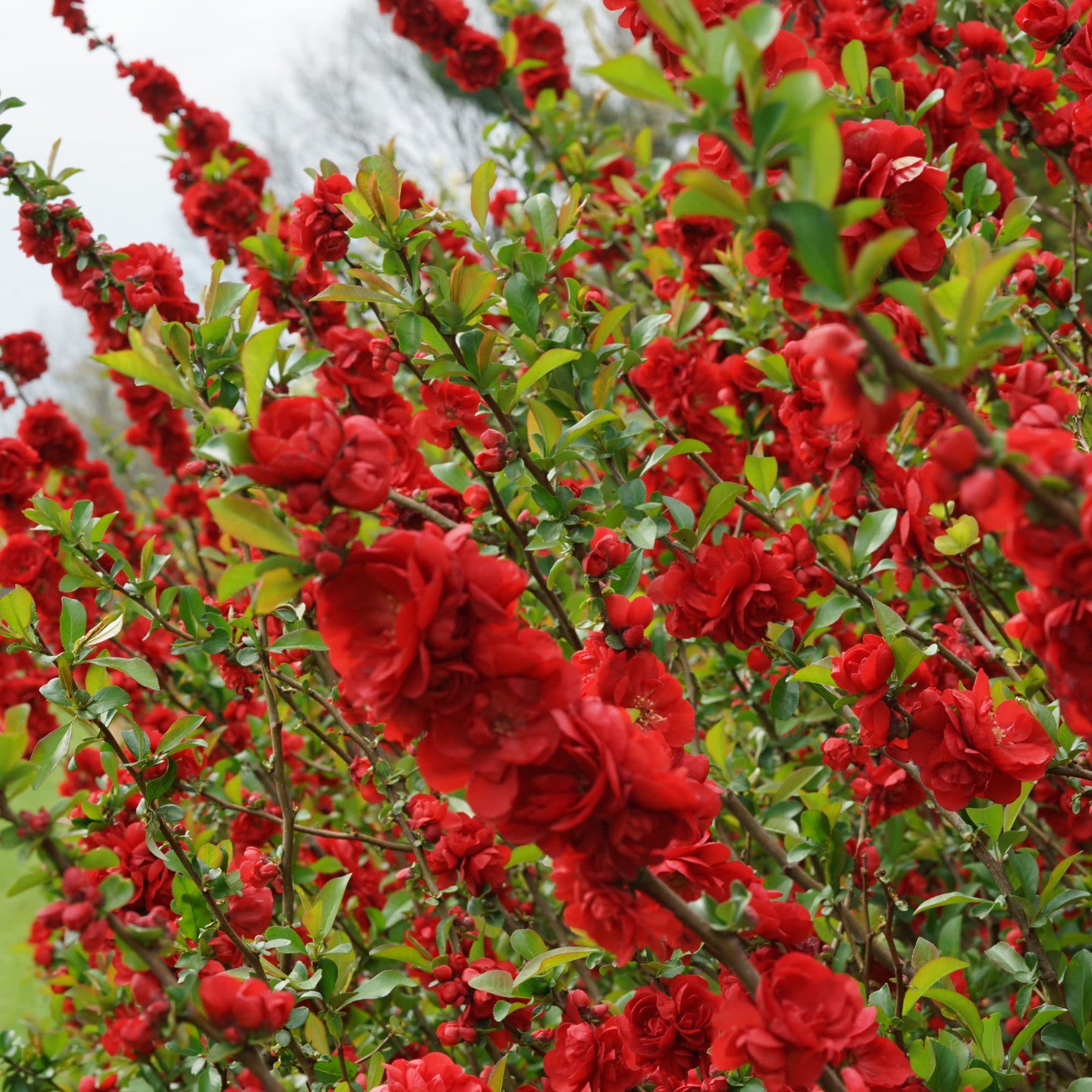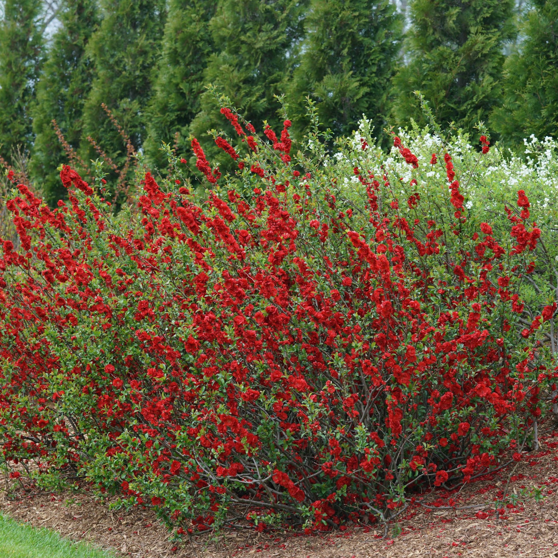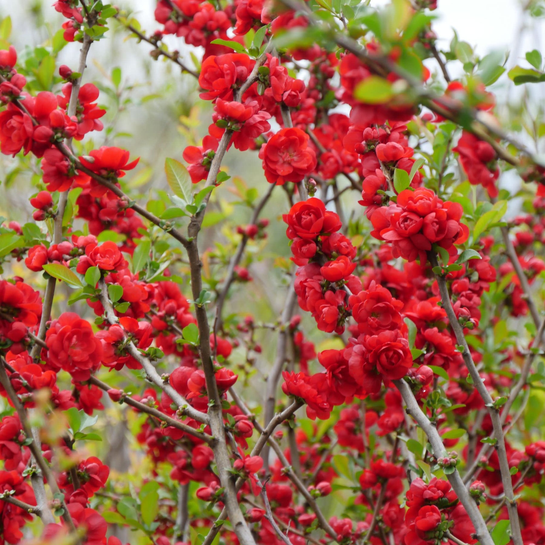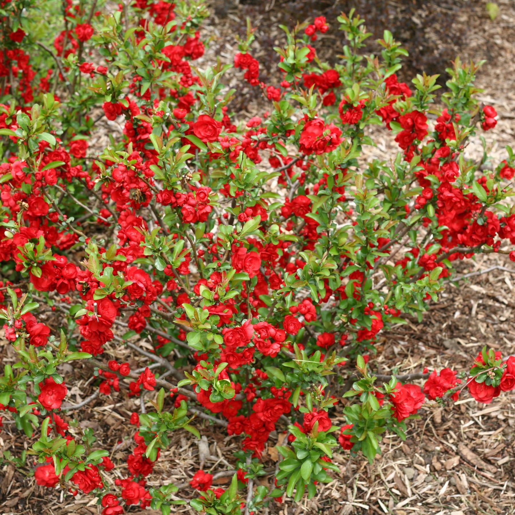 Tired of winter’s gray? Double Take® Scarlet Quince brings the drama—and the cheer—with a flurry of frilly, doubled red blooms that light up the landscape in early spring. Thornless branches make this classic favorite totally garden-friendly, while its rich scarlet flowers create an instant sense of luxury and celebration.