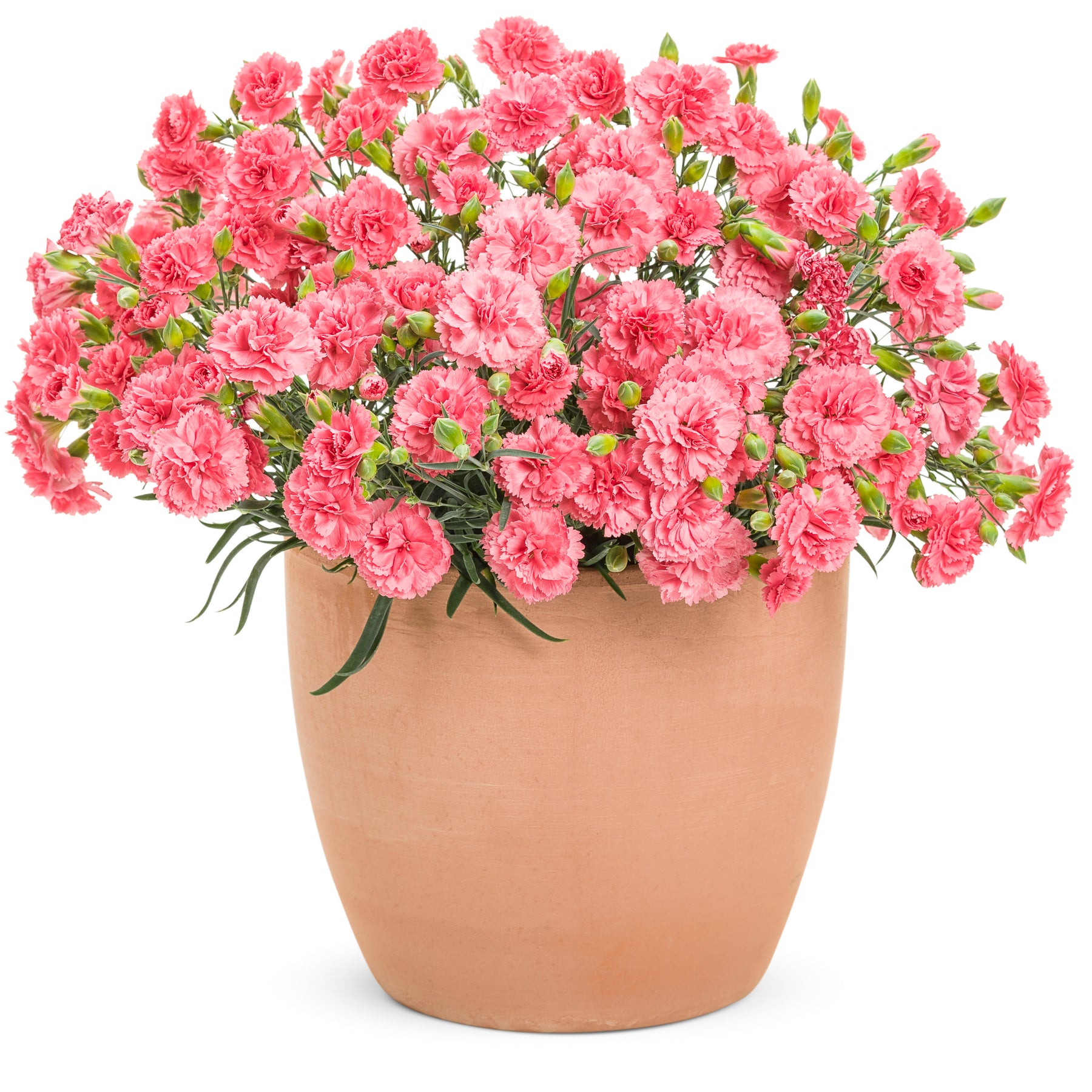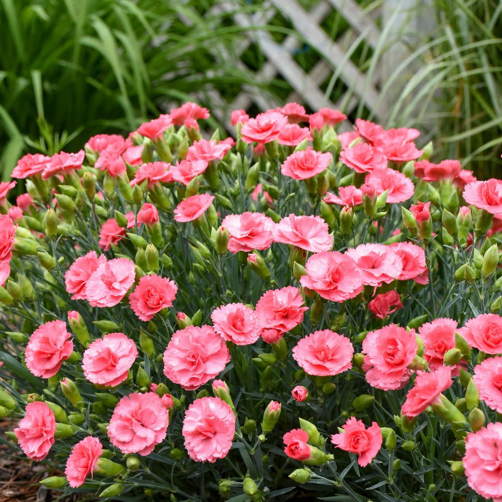 Looking to spice up your garden with a burst of bold personality? Meet Fruit Punch® Dianthus ‘Classic Coral’, the little plant with big attitude! Early summer brings a confetti explosion of double, coral pink blooms—vibrant and cheerful like a garden party in full swing. These fragrant blossoms perch proudly atop a tidy, blue-green cushion of foliage, like the crown jewels of your border.