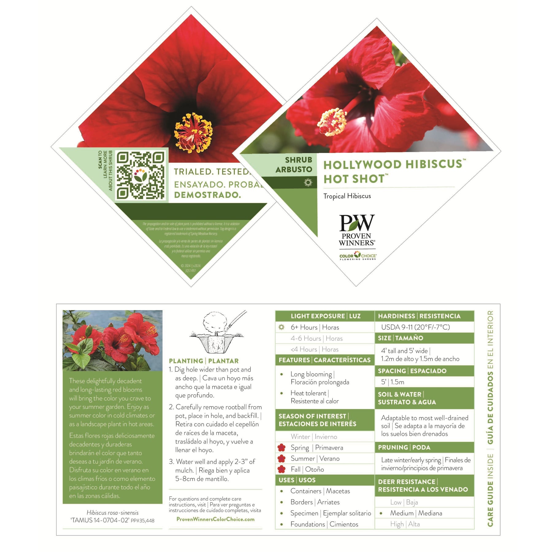 Perfect for containers or summer garden beds, this tropical hibiscus thrives in the heat but needs to come indoors when temperatures drop. In colder climates, place it in a bright, cool spot for winter and keep watering light. It might shed a few leaves and pause blooming, but once it’s back in the sunshine, Hot Shot™ bounces right back—lush, vibrant, and bursting with blooms. It’s the ultimate drama queen, in all the best ways.
