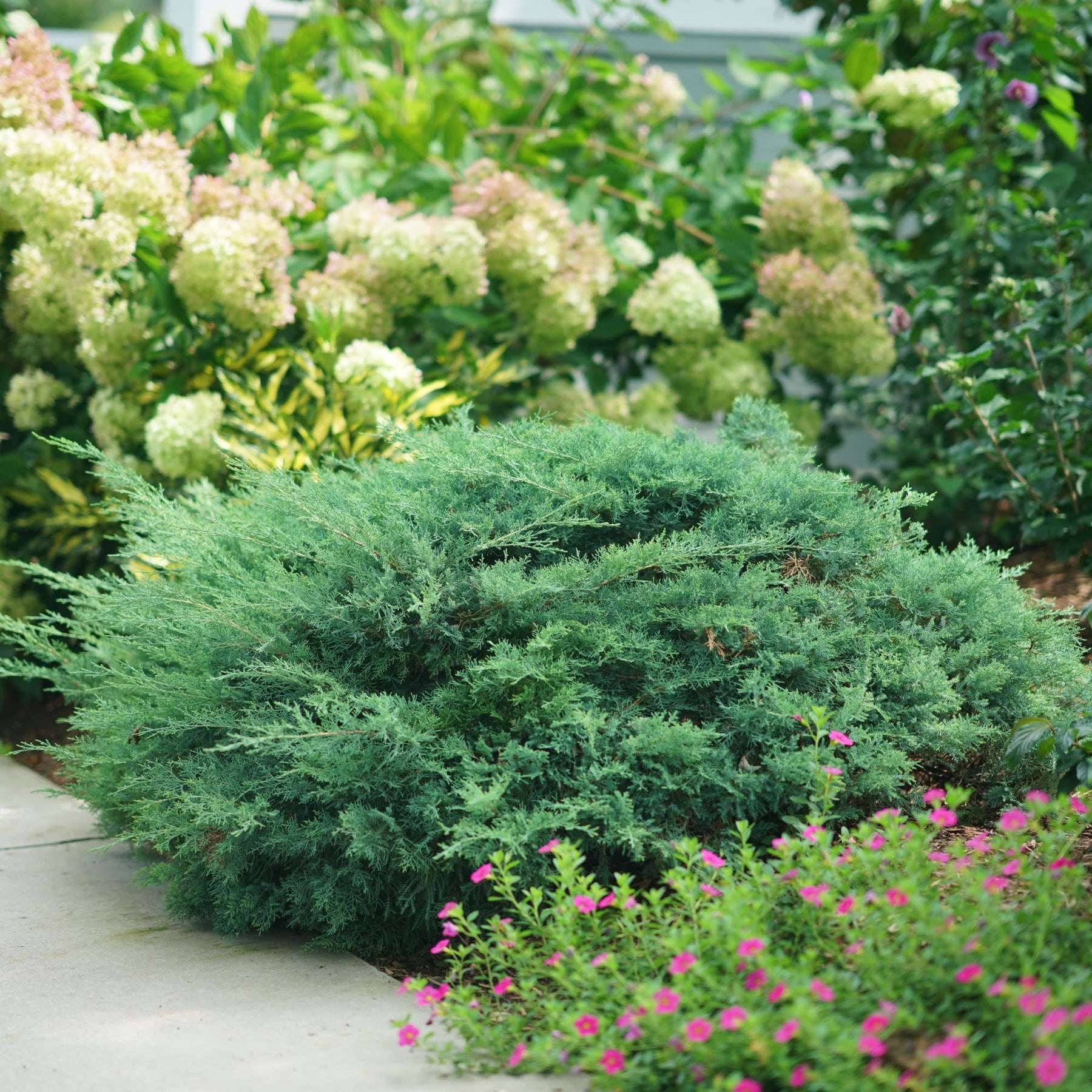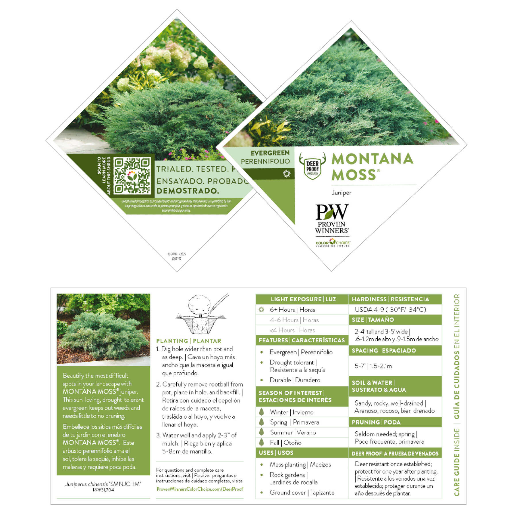 Check every tricky landscape box with Montana Moss® juniper — the ultimate problem-solver in a perfectly plush package. This low-growing wonder spreads effortlessly as a groundcover, filling in borders and blank spaces with graceful ease. Nestle it between bold plantings or let it take center stage in tough spots; either way, it brings a soft, sea foam green glow that freshens up the garden year-round.