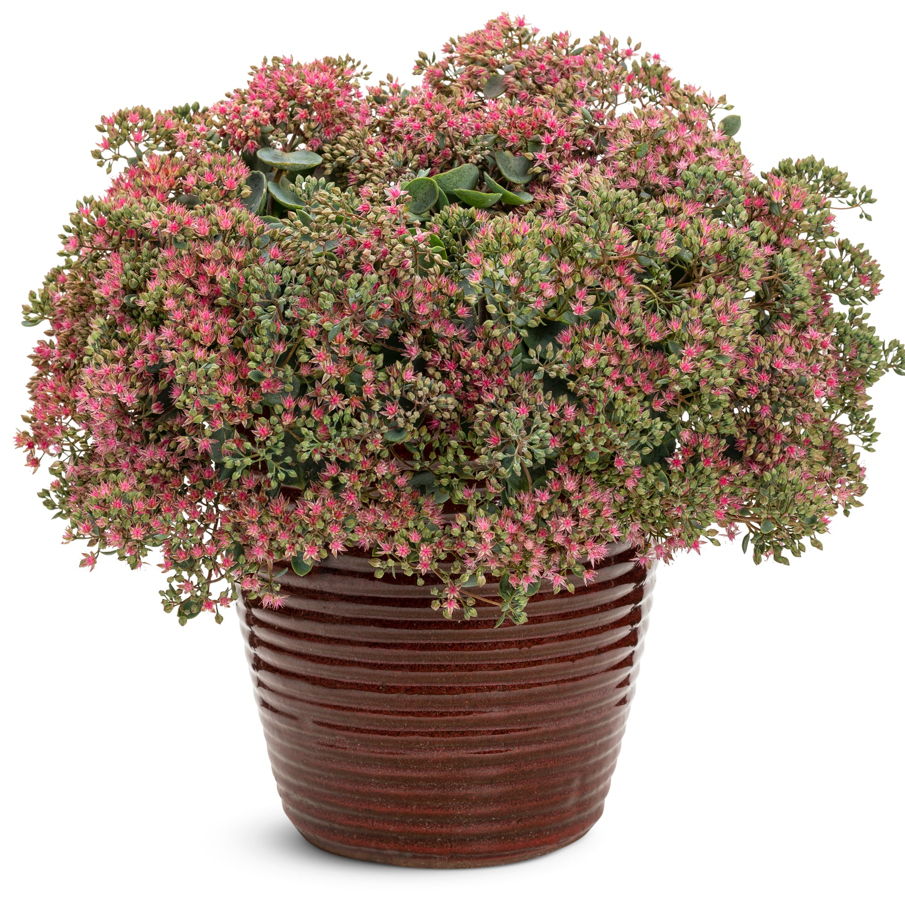 Get ready to roll out the green carpet! The 'Popstar' is here to steal the show with its effortlessly cool vibes and head-turning blooms. This low-maintenance perennial rocks a lush, blue-green outfit all season long, forming a tight, compact mound that's always camera-ready. When late summer hits, it drops its chart-topping act—bursting into salmon pink flowers that absolutely slay the stage. Pollinators? They’re the screaming fans. No diva behavior here—'Popstar' is as easygoing as they come. Drought-tolerant, sun-loving, and always on beat. Let your landscape sing with 'Popstar'!