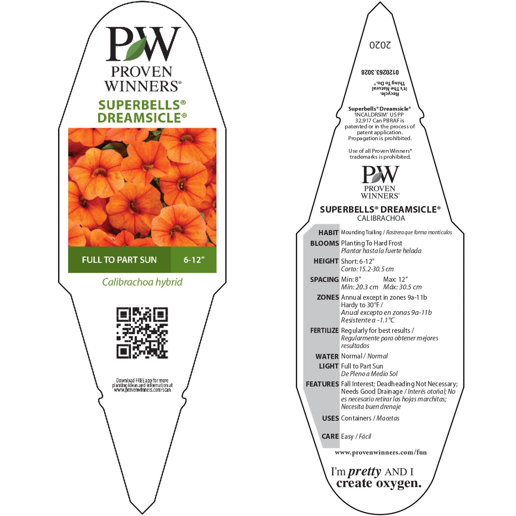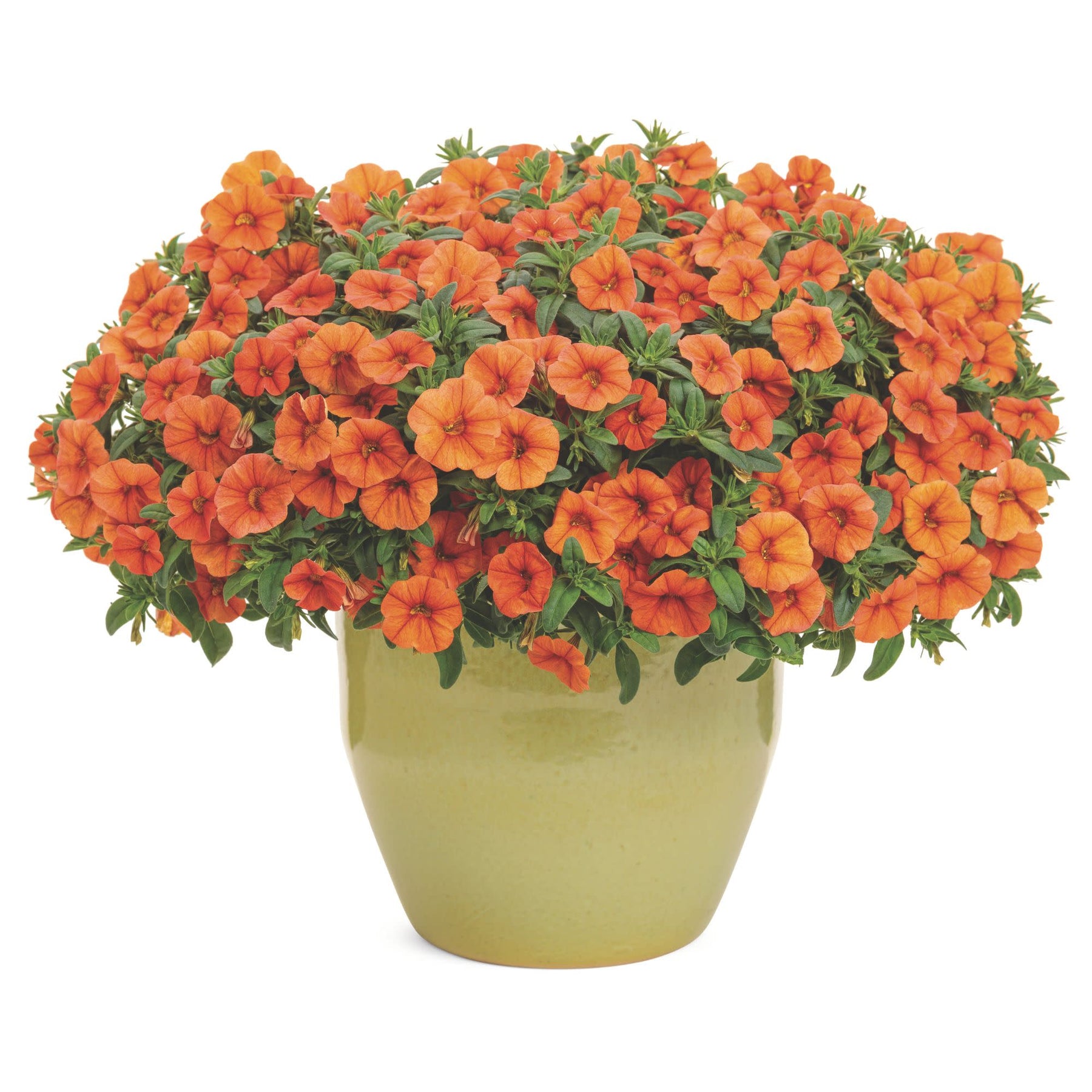 Superbells Dreamsicle displays beautiful orange flowers. Abundant, small petunia-like flowers bloom from planting until the first frost, attract hummingbirds, and do not require deadheading.