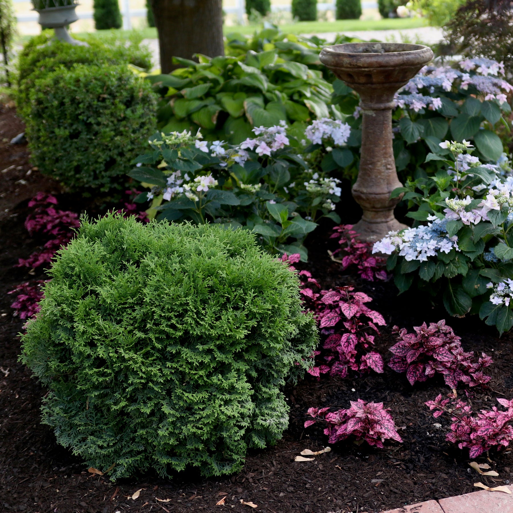 Tater Tot® arborvitae is the perfect plant accessory for your landscape - its neat, rounded shape is ideal for sprucing up any space in your yard! It naturally grows as a tidy little globe of fragrant, fan-like evergreen foliage. It's quite tolerant of shade, too, so you can plant it just about anywhere and enjoy year-round beauty from this easy care native shrub.