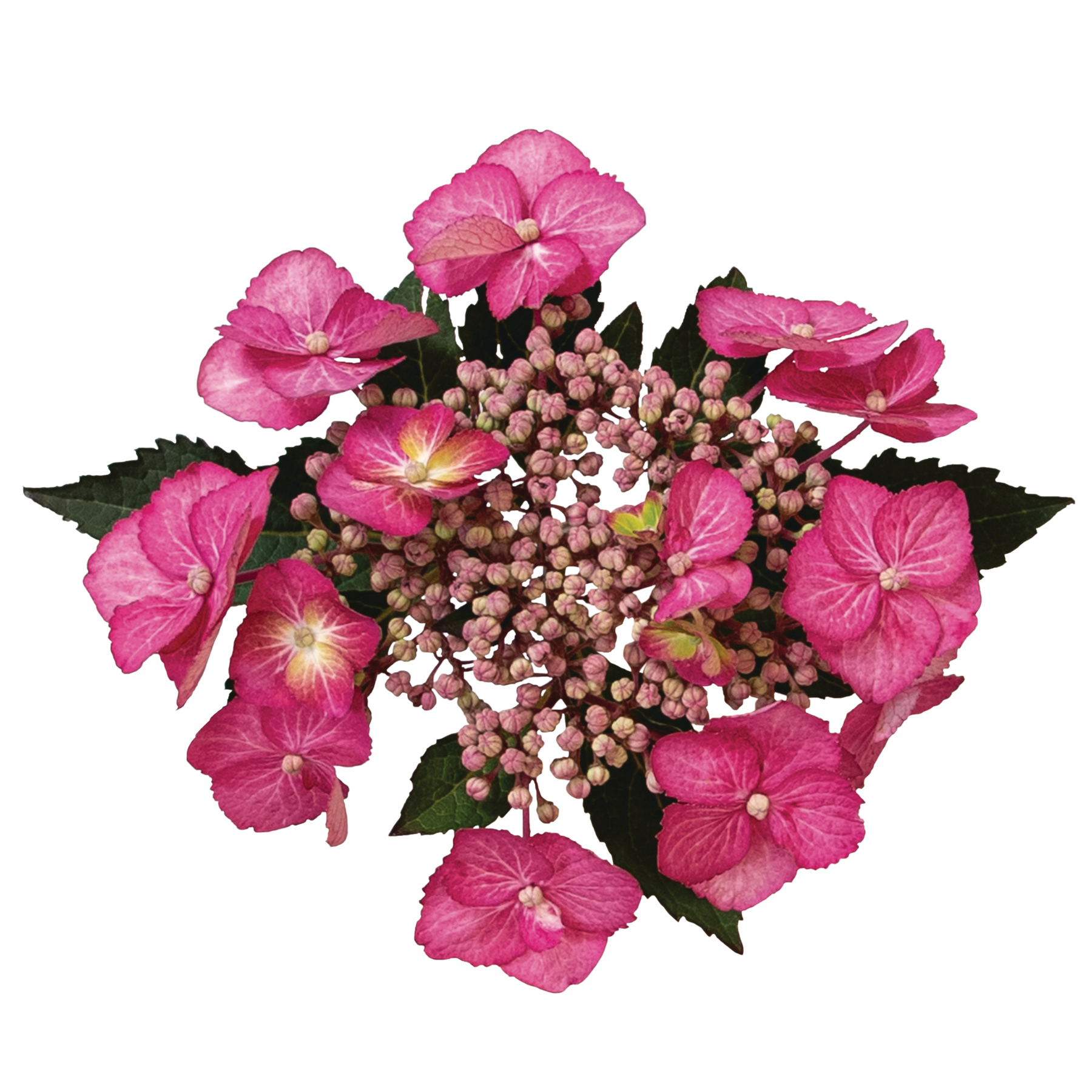 Brimming with color, Tuff Stuff Top Fun® hydrangea’s bold lacecap blooms are supported by bright burgundy stems. Each flower is filled with cheery green fertile florets at the center and purple or pink infertile florets around the edges. So inviting to pollinators and quite a lovely cut for florists. And these flowers just keep coming all summer long, first on old wood and later on new wood.