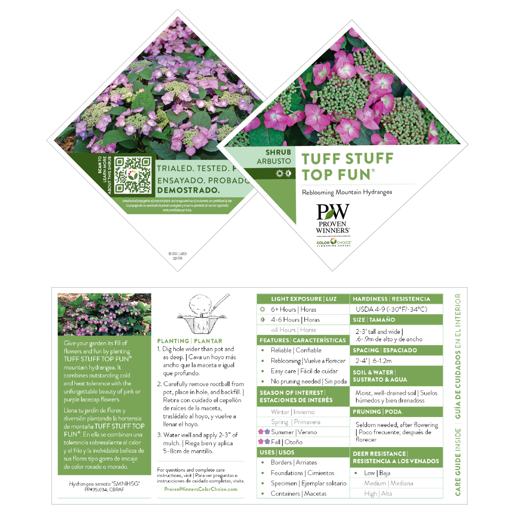 Care: Fertilize with Proven Winners Continuous Release Plant food in spring and mid-summer. Tuff Stuff hydrangeas should not be pruned except to remove any dead wood in spring, after the new growth begins to emerge on the stems.